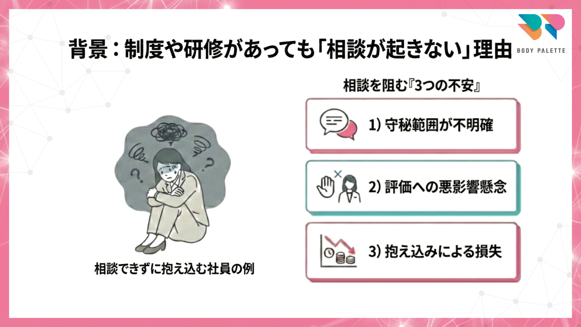 背景:制度や研修があっても「相談が起きない」理由