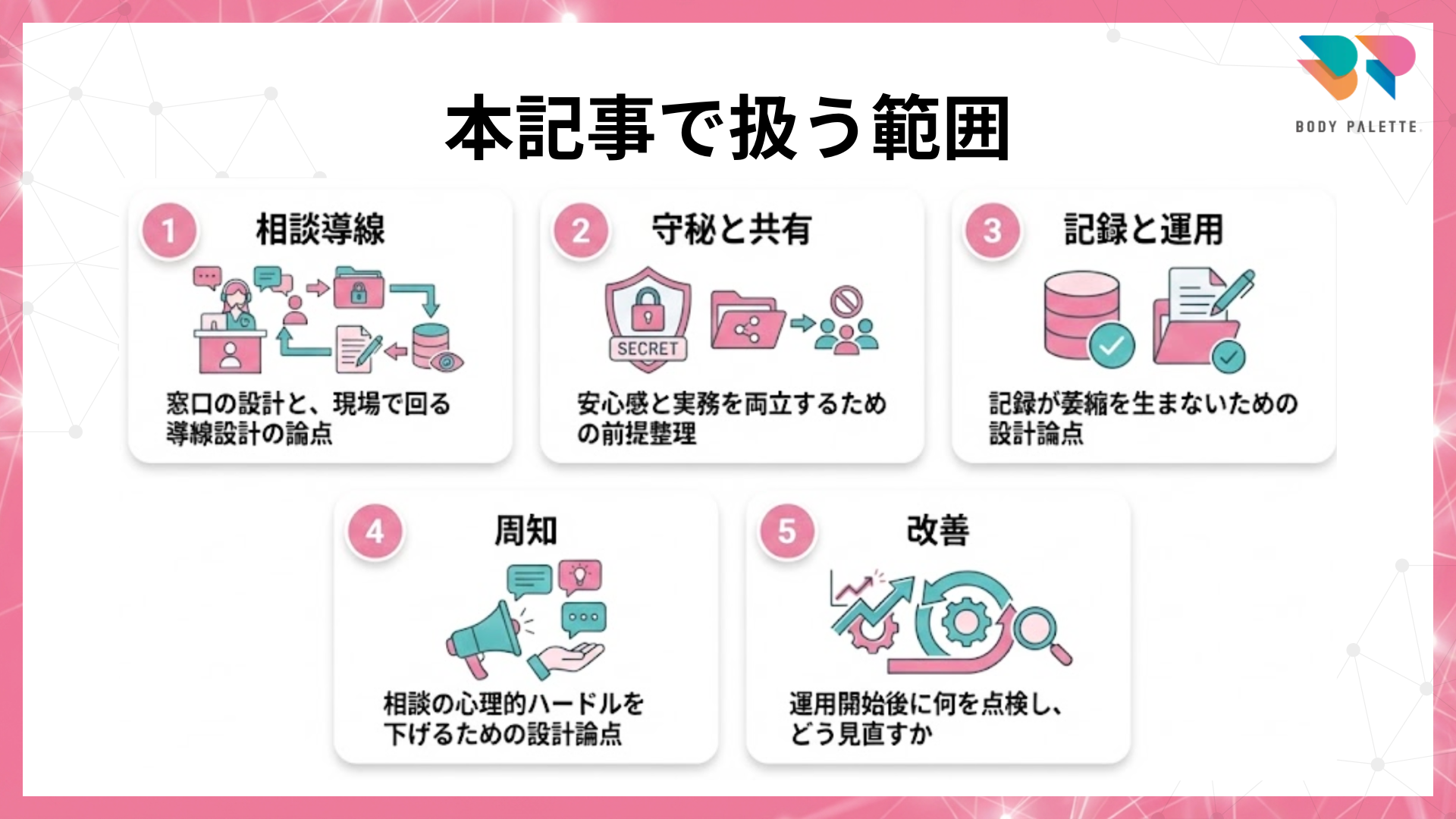 本記事は、相談窓口と運用ルールを整備する際の「整理の型」を提示するものです。