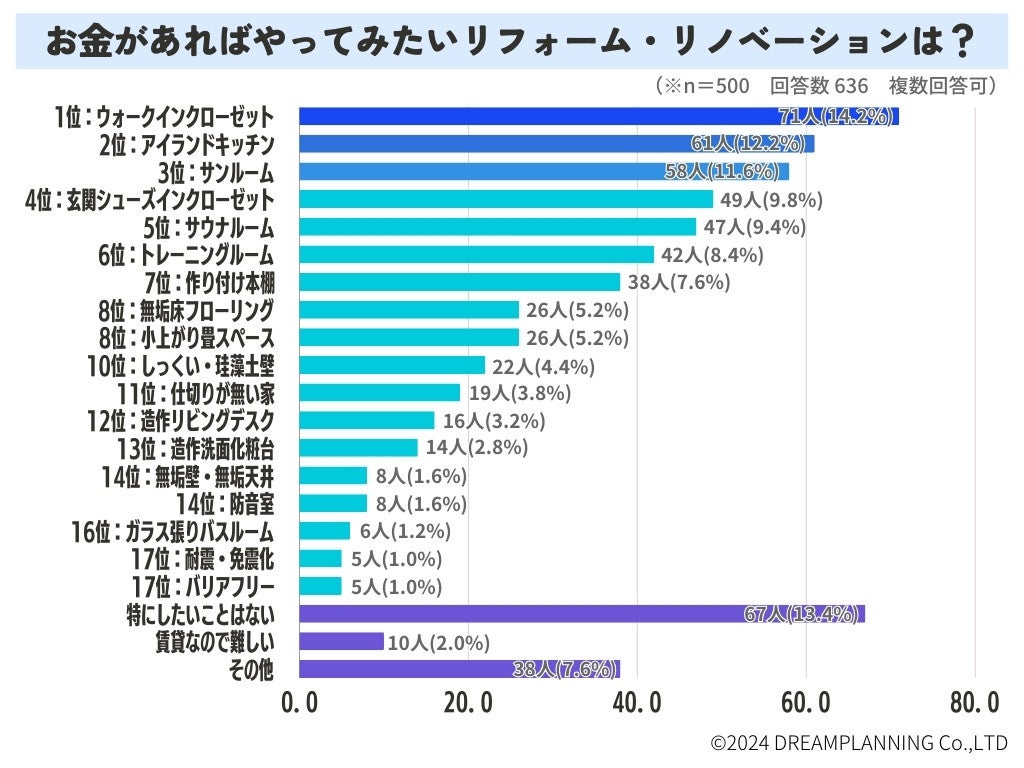 次に、現実的に今やりたいリフォームではなく、お金があればやってみたいリフォームについて聞いてみました。