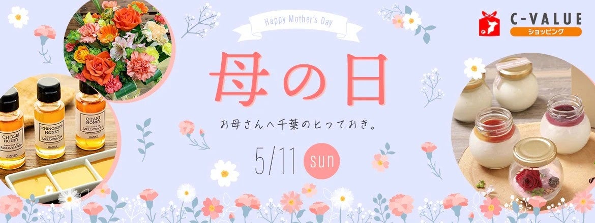2025年の母の日は5月11日(日)。母の日限定のお花や、一緒に食べたいスイーツ・グルメギフトなどを【C-VALUEショッピング】にて品揃えしています。