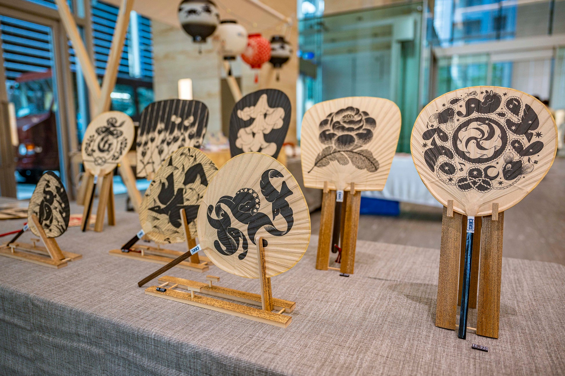 ガレリア横のアトリウムには、伝統と現代が融合したクラフトやアート雑貨が並ぶ夜店「宵待(よいまち)商店」が登場します。うちわや手ぬぐい、アクセサリーや陶芸品など、夏らしい趣のある品々が揃います。