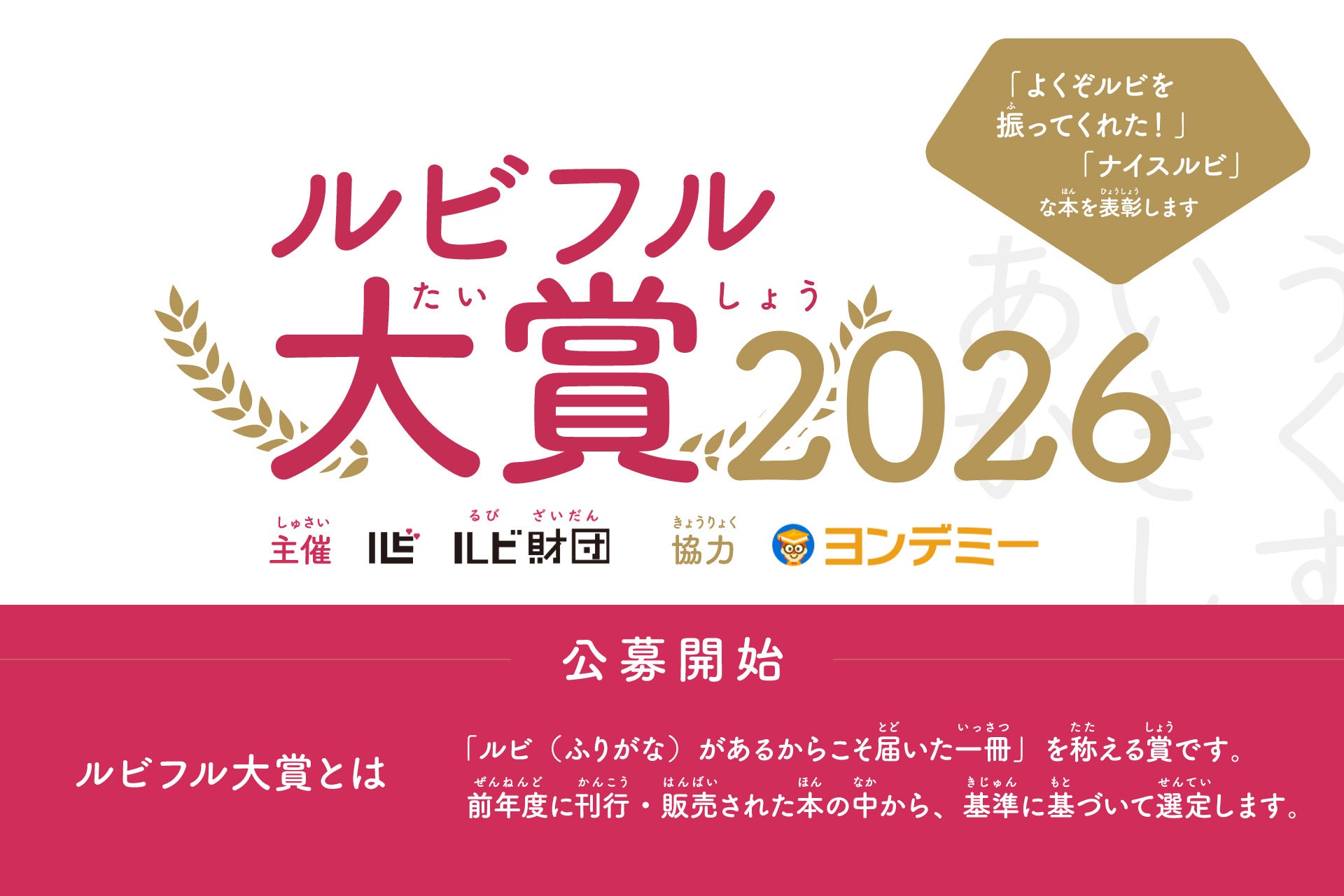 ふりがながあるからこそ届いた一冊を称える「ルビフル大賞2026」公募開始(4月10日まで)