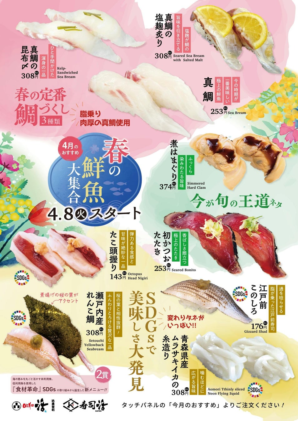 真鯛もさざえも春爛漫!「回し寿司活・寿司活」春の旬メニューが4月8日スタート