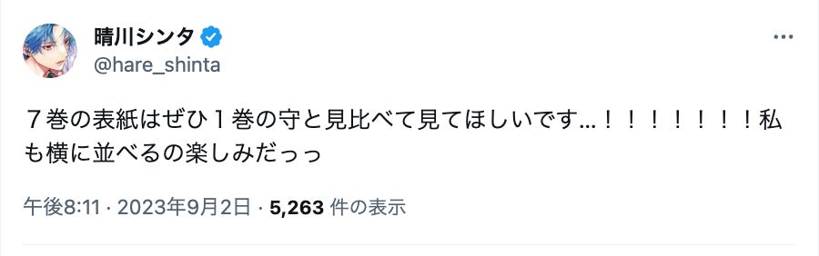 作者・晴川シンタは、第1巻の守との違いにも注目して欲しい、とも投稿している。