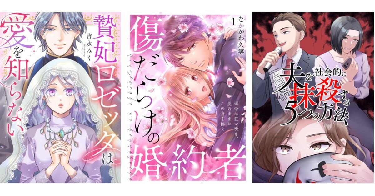 オトナ女子に向けた『贄妃ロゼッタは愛を知らない』、コミックシーモアとの協業作品『傷だらけの婚約者~運命は狂い咲き、愛のままにこの身を捧ぐ~』も配信