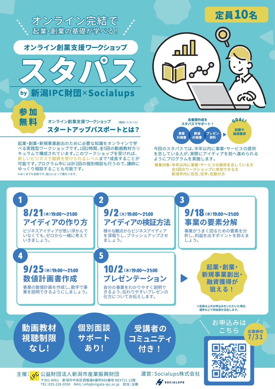 【2025年8月開講】Socialups、オンライン創業支援ワークショップ「スタパス」を新潟IPC財団と連携し初実施