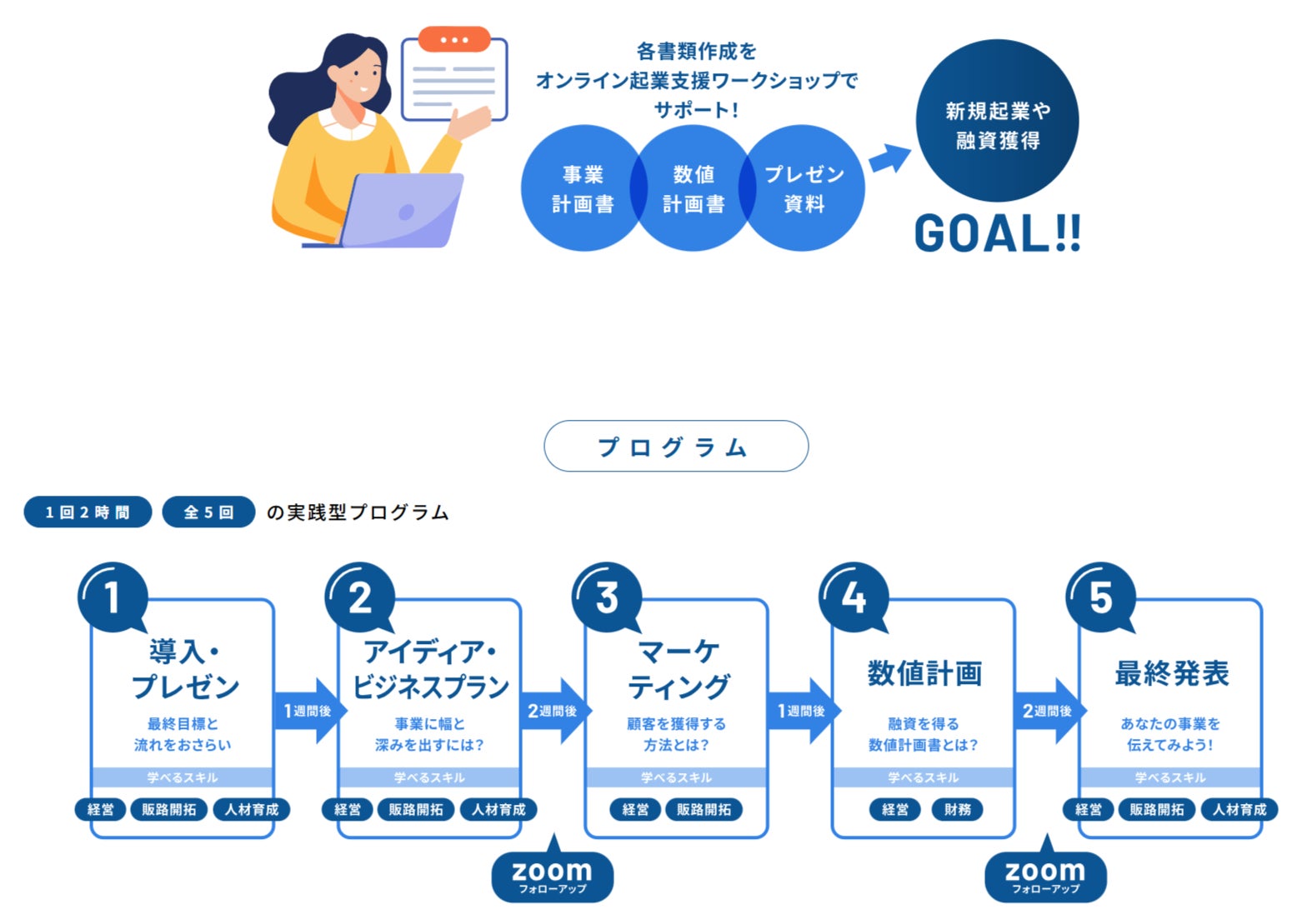 起業や融資獲得のために必要となる各書類「事業計画書」「数値計画書」「プレゼン資料」の作成をサポート