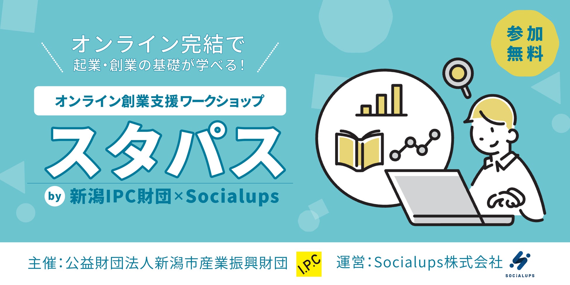 Socialups株式会社(本社:新潟市中央区、代表取締役CEO:髙瀬章充 以下、当社)は、公益財団法人新潟市産業振興財団(通称:新潟IPC財団 理事長:朝妻 博、以下、新潟IPC財団)と連携し、起業のために必要な知識をオンラインで学べる実践型ワークショップ「スタパス by 新潟IPC財団×Socialups」を実施いたします。
