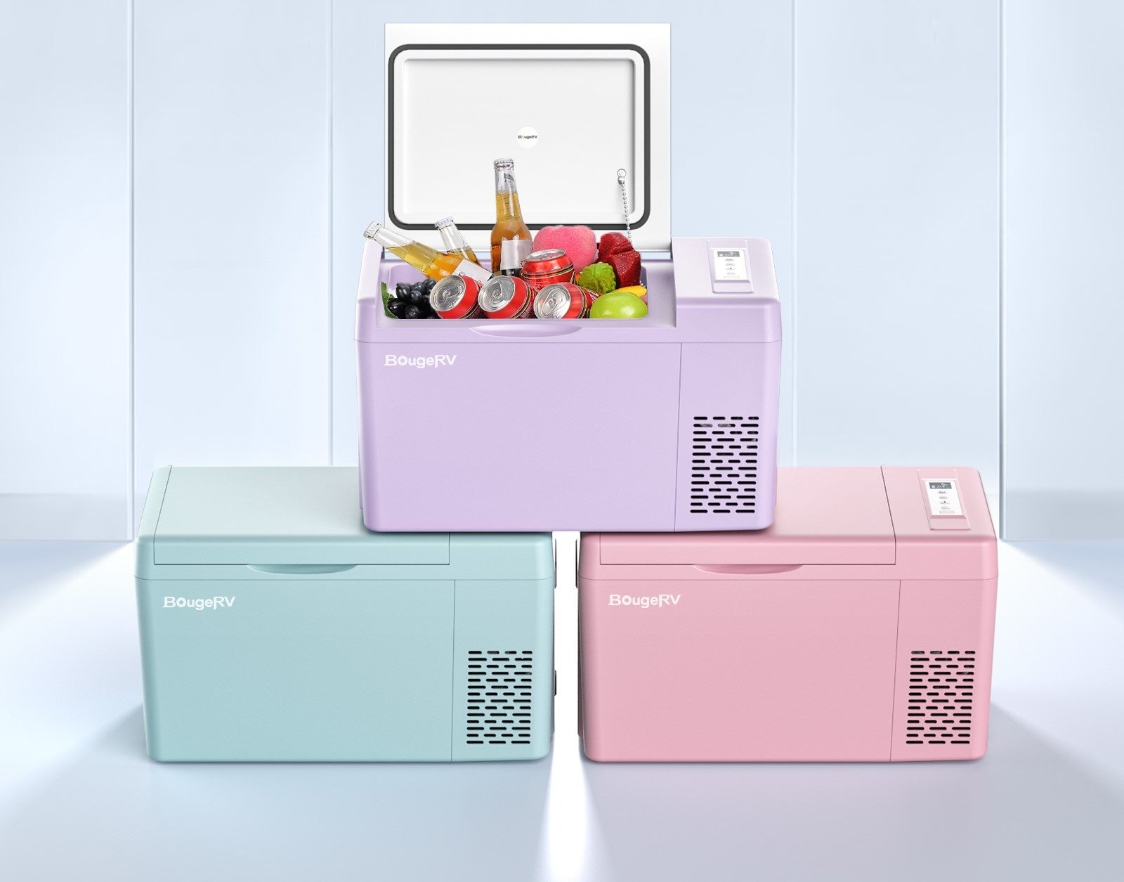 BougeRV の人気商品であるポータブル冷蔵庫「CR シリーズ」の性能を搭載し、新たにSakura Pink(サクラピンク)、Mauve Purple(モーブパープル)、Mint Green(ミントグリーン)とキッチンやアウトドアシーンを彩るカラフルな3色展開です。さらに、持ち運びのしやすいハンドル設計などのデザイン性と軽量化を兼ね備えています。