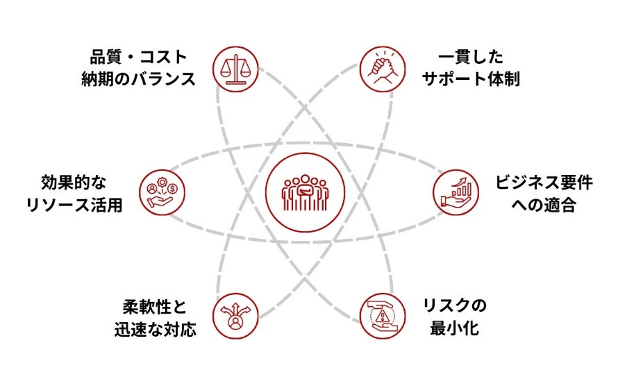 柔軟かつ迅速な対応により、リソースを効果的に活用し、品質・コスト・納期のバランスを最適化します。