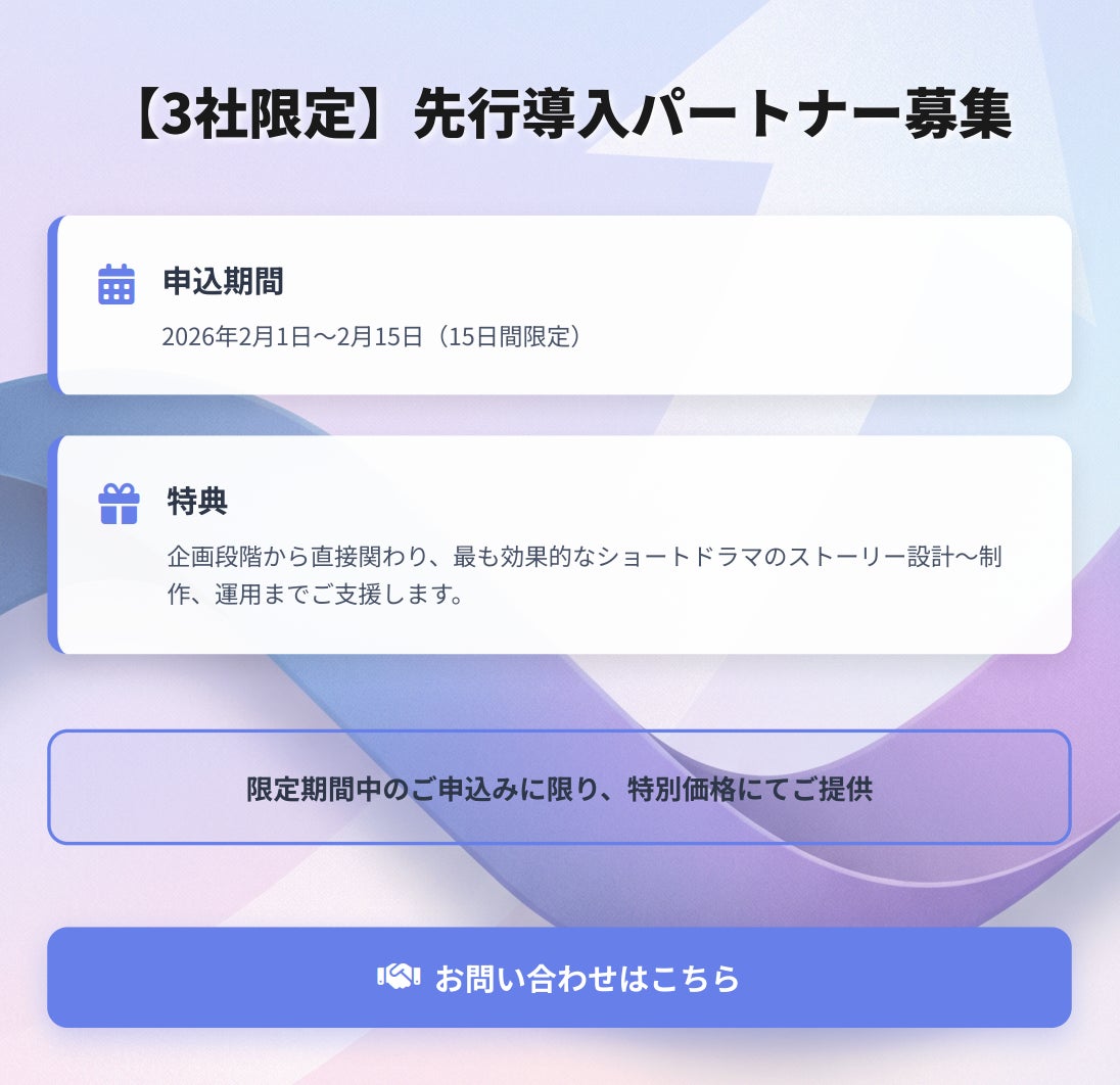 インフルエンサーキャスティングを展開する株式会社Suu(本社:東京都渋谷区、代表取締役:安藤鈴菜、以下「当社」)は、2026年より、縦型ショートドラマの企画・制作から運用までを一気通貫で支援する新事業を開始することをお知らせいたします。