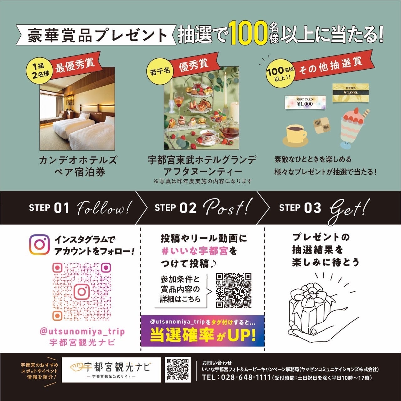 投稿に @utsunomiya_trip をタグ付けすると、当選確率がアップ☝