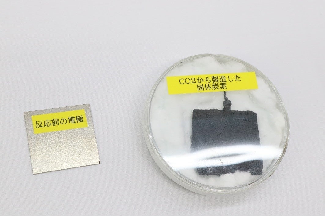 固体炭素は、カーボンブラック(注1)等として世界的に需要が増加している機能材ですが、現在は、石油・石炭といった化石燃料を原料とした製品であり、製造工程でCO₂の排出を避けられないという課題があります。こうした中、本共同研究は、地球温暖化の原因物質であるCO₂を100%の原料とした固体炭素製造技術の確立・および実用化を目指すものです。実用化出来れば、「固体炭素を作れば作るほどCO₂が減る」こと(CO₂のネガティブエミッション)に繋がる社会的意義の非常に高い研究です。