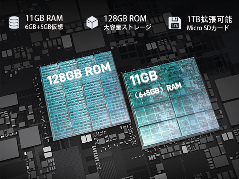 DOOGEE T10S タブレット は、6GBのメモリ+5GBの拡張可能な仮想メモリ、合計11GBの融合メモリを搭載しています。これにより、タブレットは複数のアプリケーションを簡単かつスムーズに切り替えることができ、ラグをなくし、高速でスムーズな操作体験を提供します。128GBの大容量ストレージも搭載されているため、メモリ不足を心配する必要はもうありません。 大容量の1TBまでのmicroSDカードでストレージ容量をさらに拡張できます。(FAT32、exFATフォーマットカードは別売り)