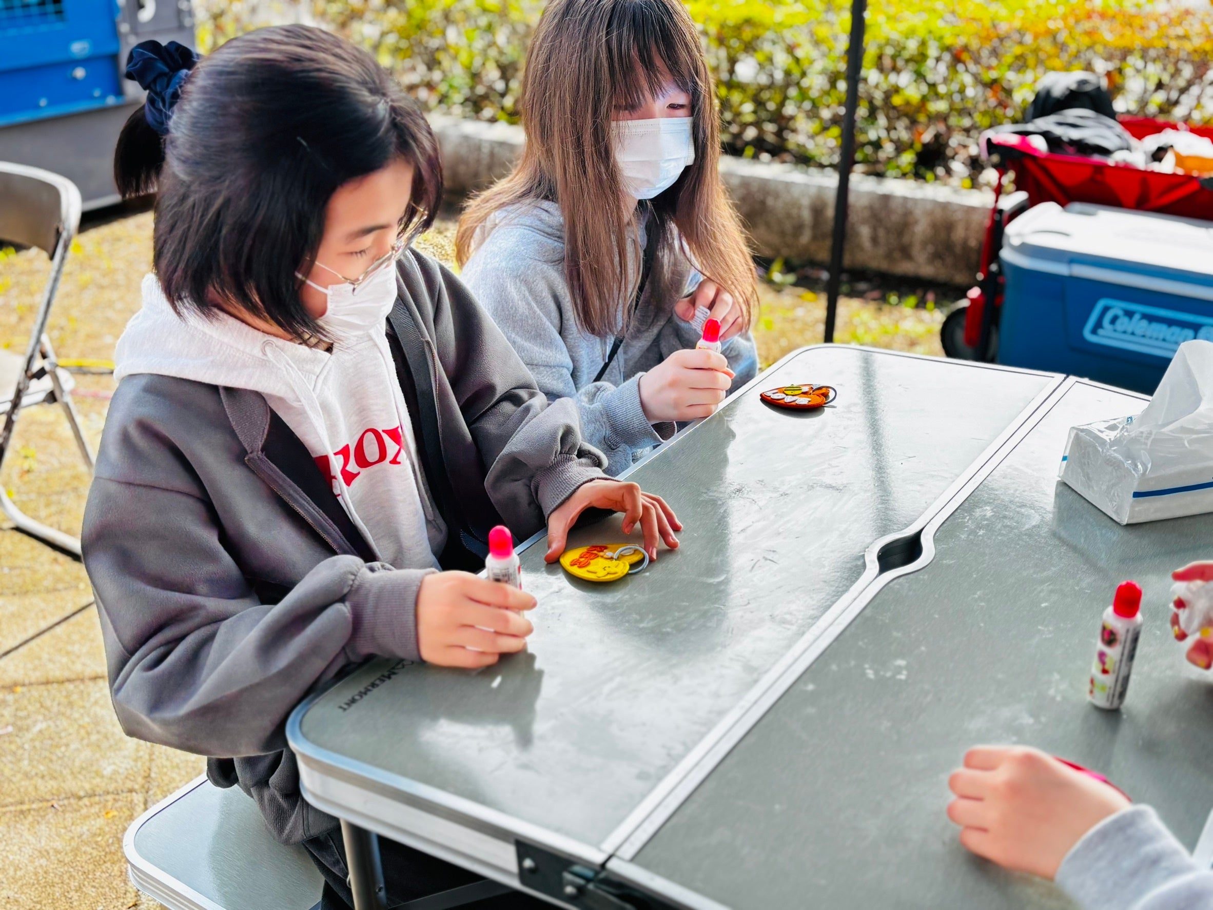 今回は手作り小物の販売に加え、体験コーナーとして「ワッペンキーホルダー作り」を実施。