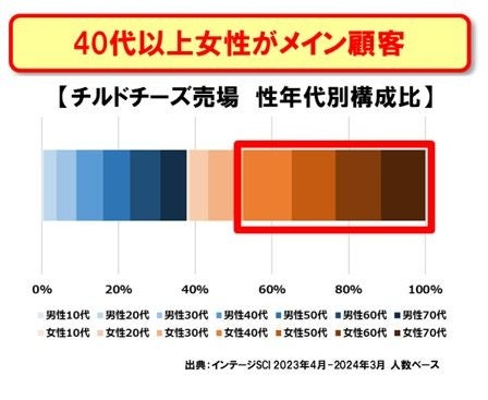 また、チルドチーズ市場の購入者の性年代別構成比は、40代以上の女性で約5割を占めており、当社の「なめらか チータラⓇ」シリーズも同様となっております。梅フレーバーは女性が好む傾向にあるため、売場にもマッチした味わいとなっております。