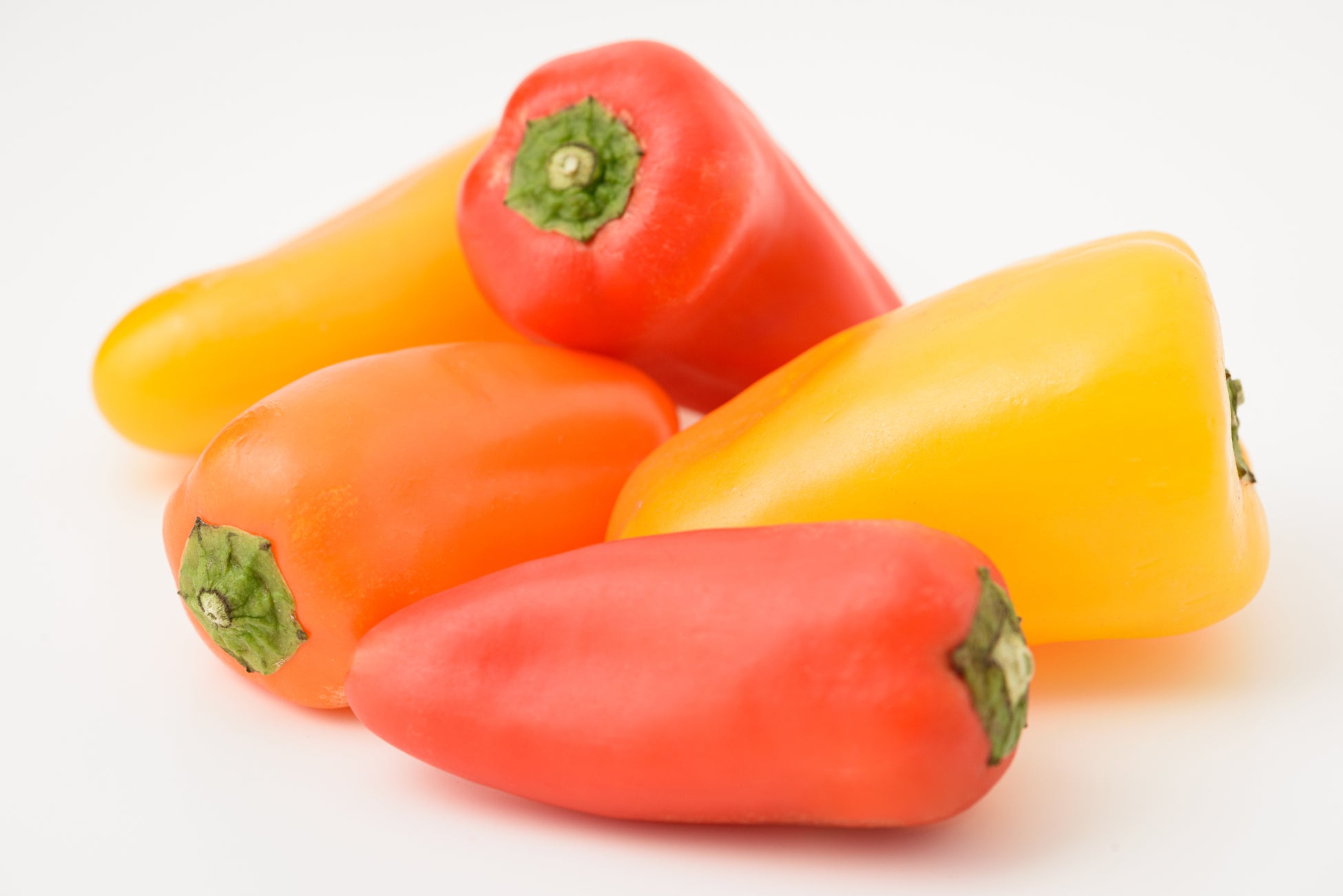 フルーツのような甘さと香りが楽しめる、ミニカラーピーマンです。緑色から完熟するとそれぞれが赤、橙、黄色に鮮やかに変化します。