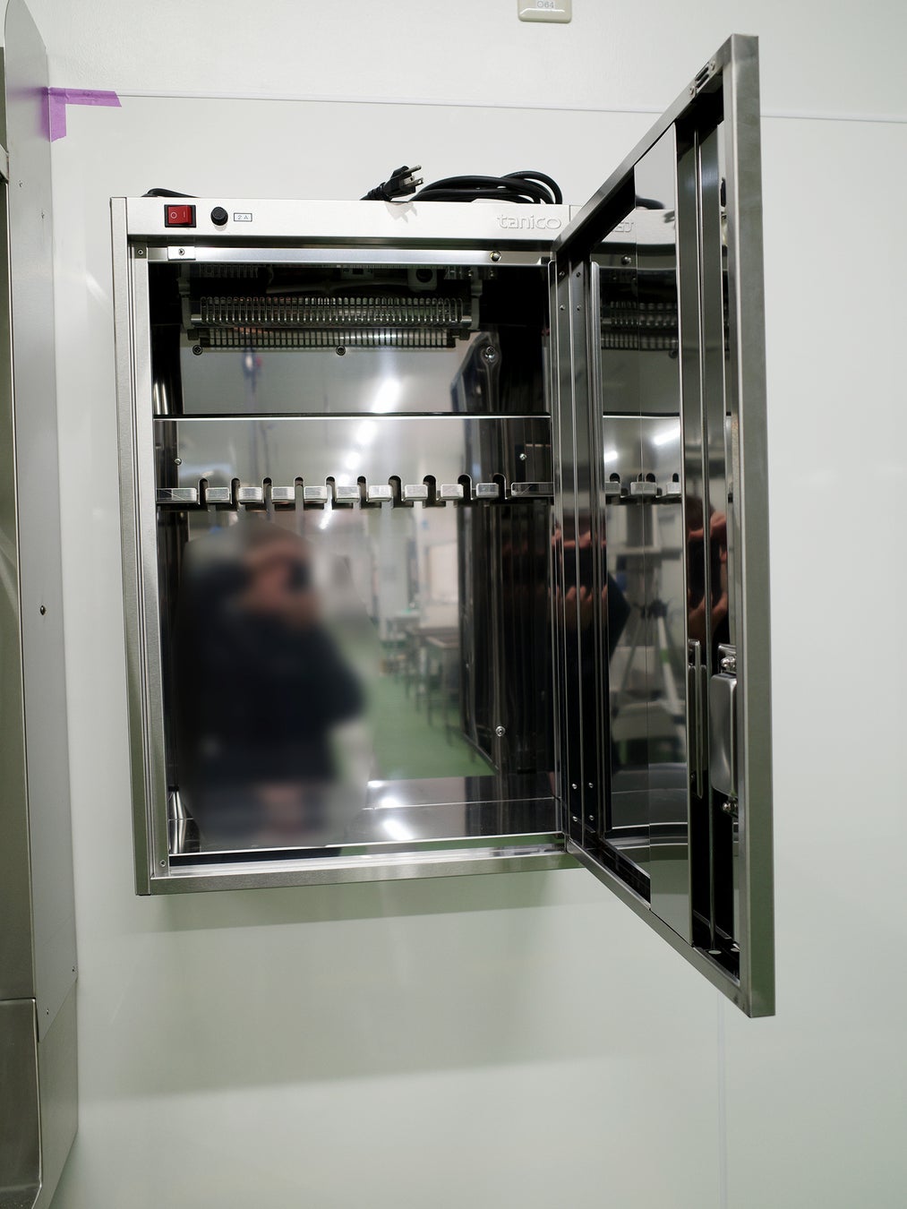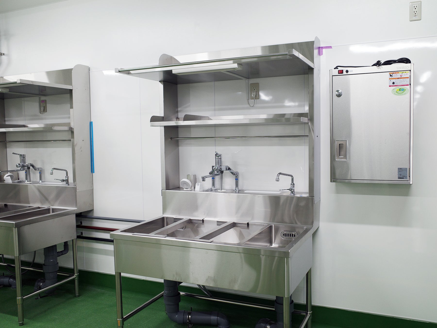 バックヤードに隈なく設置されたシンク台、その所々の壁面にはドアの付いた箱が設置されています。パカッと大きく開くステンレス製の箱。いったい何に使うものでしょうか。