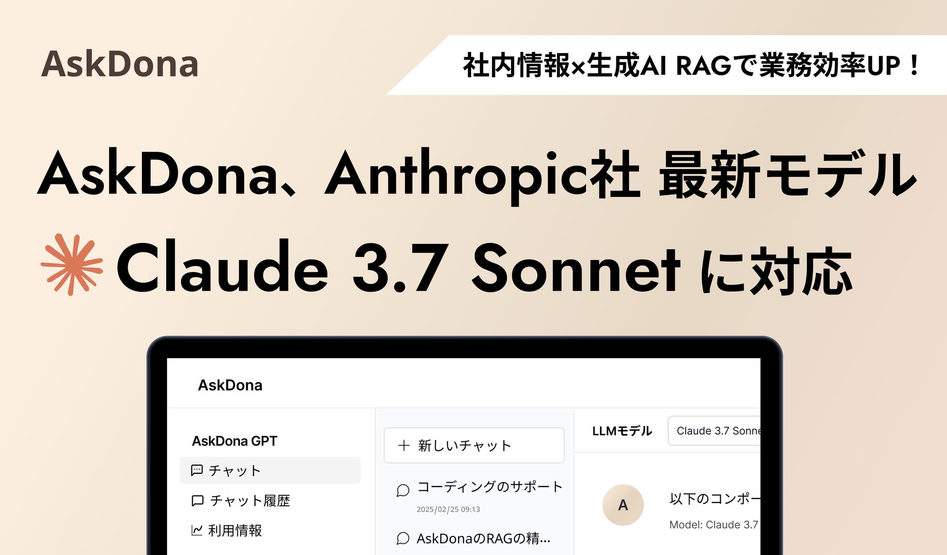 法人向けRAGプラットフォーム「AskDona」のGPTチャット機能よりAnthropic社の最新のハイブリッド推論AIモデルであるClaude 3.7 Sonnetをご利用いただけます