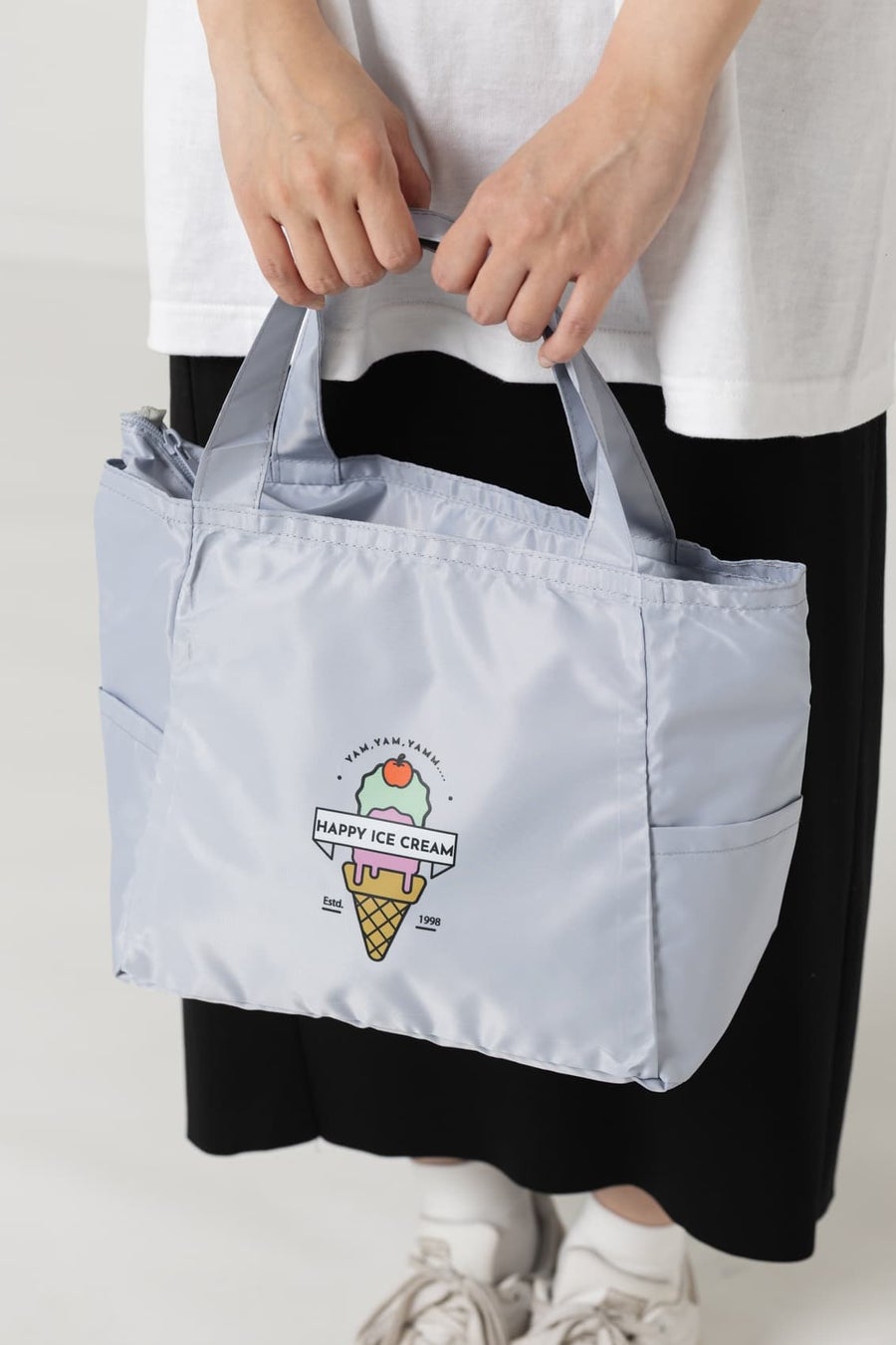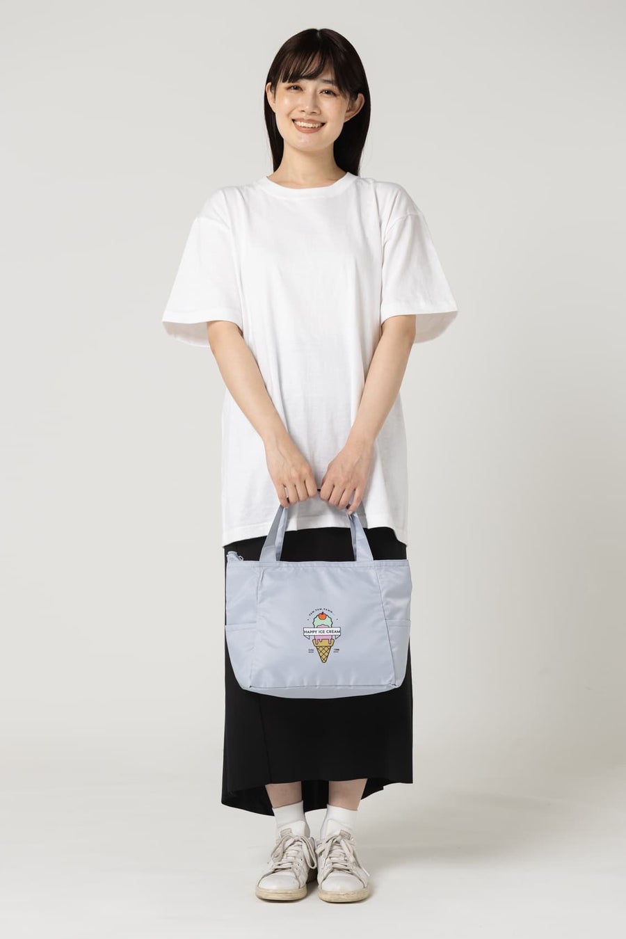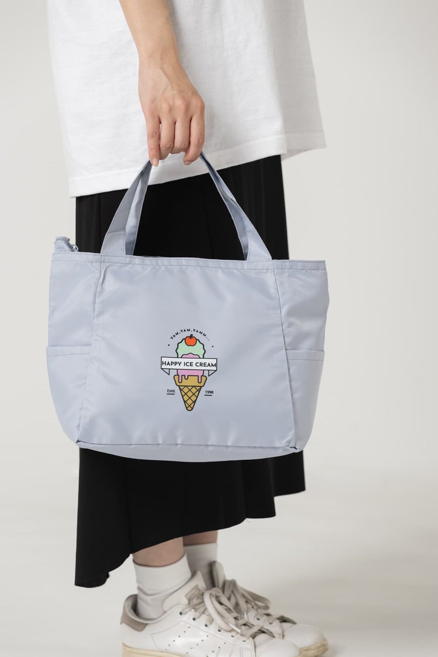 薄手でしなやかな素材を使用し、折りたたんでコンパクトに持ち運びが可能な保冷 トートバッグです。かさばらず、ごわつかない設計で、カバンの中にもすっきり収納 できます。両サイドにはスマートフォンや折りたたみ傘などを収納できる便利なポ ケットを装備。バッグの口元はファスナー付きで、開け閉めしやすく、容量いっぱい に食材や日用品を詰め込めます。日々のお買い物はもちろん、週末のまとめ買いにも 最適な大容量タイプ。食品関係のノベルティや販促キャンペーン用のアイテムとして も最適な商品です。