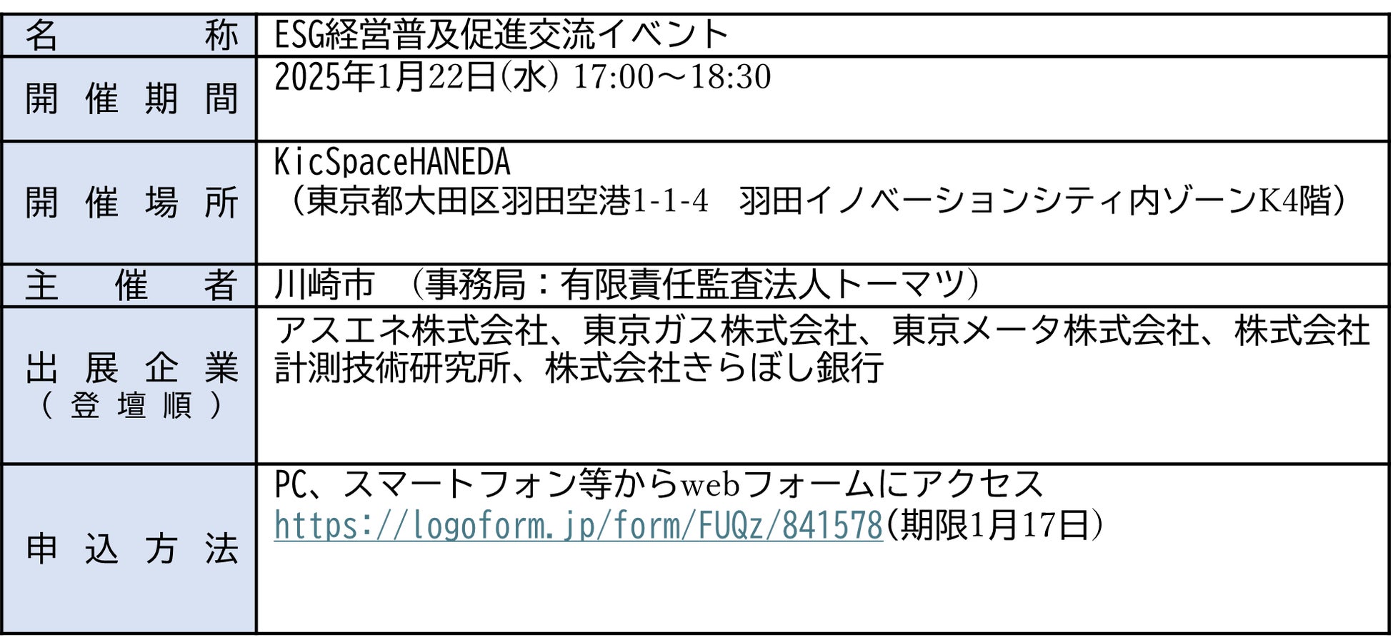 1/22 KicSpaceHANEDAにて「ESG経営普及促進交流イベント」開催!~中小企業のESG経営を支援~