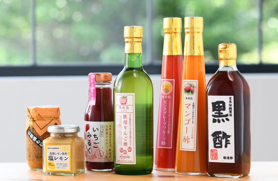 江崎酢醸造元は福岡県八女市の豊かな自然に囲まれた立地にあり、伝統的な製法を守りながら、現代の食卓に合う新しい酢づくりに挑戦し続けている醸造元です。多彩な商品ラインナップも特徴で黒酢、りんご酢、フルーツビネガーなど、様々な種類のお酢を販売しています。お酢を使った加工品として「お酢屋さんがつくったいちごみるくの素」なども人気になっています。