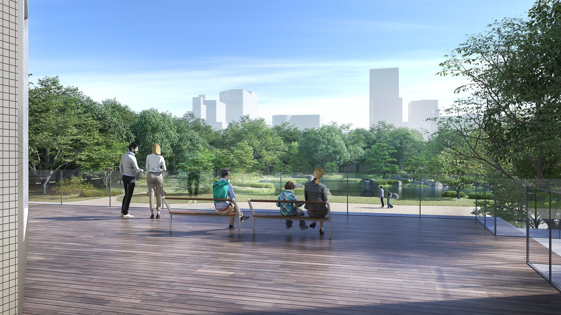 ・近代日本庭園の名園である慶沢園(けいたくえん)を望むテラス(無料ゾーン)を新設し、カフェを設けます。