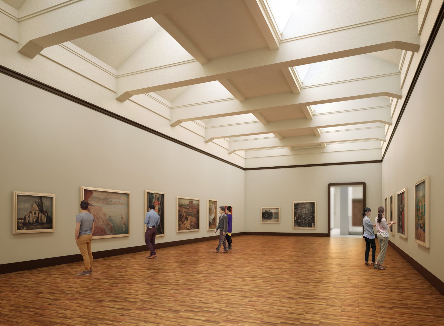 開館以来の規模となる今回の大規模改修では、国の登録有形文化財である建物外観を保全する一方、美術館の心臓部ともいうべき展示・収蔵環境を向上させるとともに、無料ゾーンや公園のグラウンドレベルからお入りいただける新エントランスの新設など、より多くの方に「親しまれる」、現代にふさわしい「ひらかれた」ミュージアムとなるよう、機能整備を図りました。