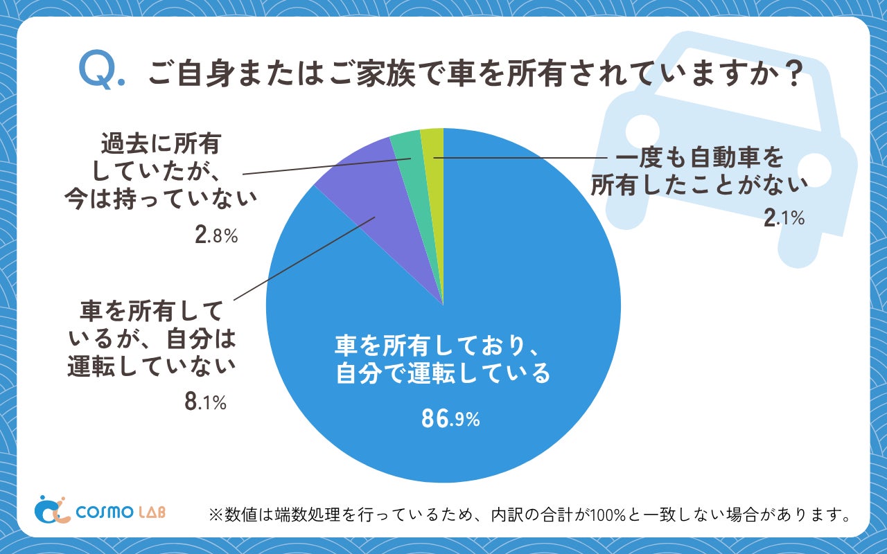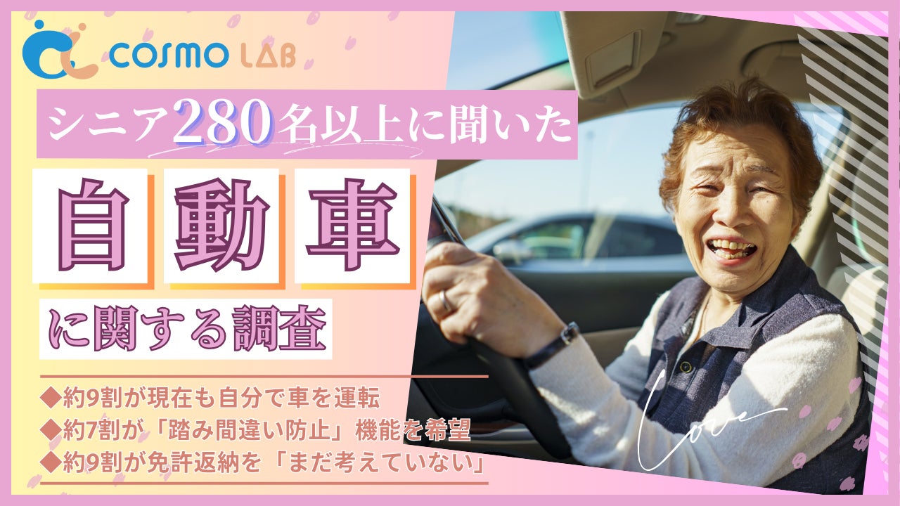 シニア専門のマーケティングプラットホーム コスモラボ(会社名:コスモヘルス株式会社、本社:東京都港区、代表取締役社長 小塚 崇史)がシニア層の『自動車の利用』に関するアンケートリサーチのレポートをリリースしました。本レポートでは、車の所有状況や、利用目的、購入時の重視点、運転支援機能への関心など、多角的な視点からシニア世代の自動車利用実態と今後への意向が明らかになりました。