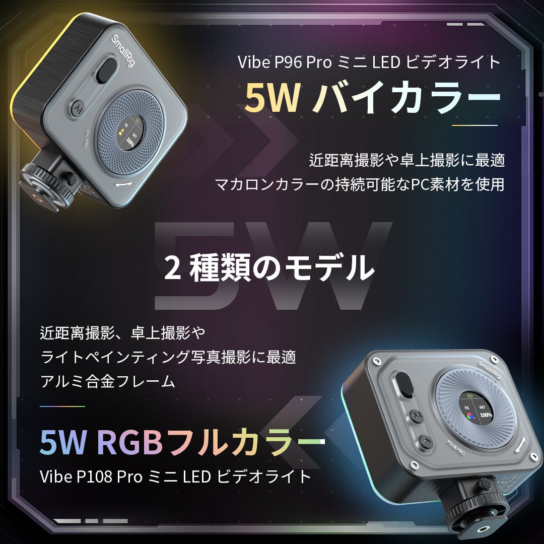 販売ページ:https://www.smallrig.com/jp/Vibe-P96-P108-Pro-mini-LED-Video-Light.html