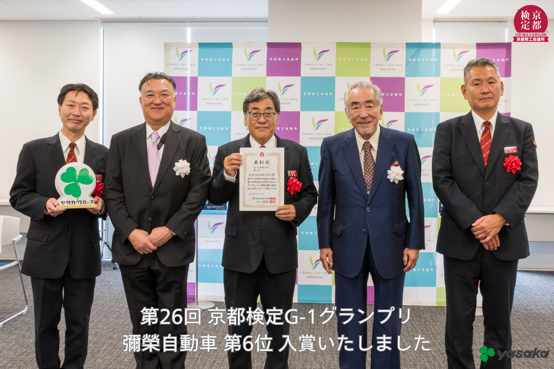 第26回 京都・観光文化検定試験(以下:京都検定) G-1グランプリ 表彰式が2025年9月18日に開催され、彌榮自動車株式会社(ヤサカグループ本社、以下:彌榮自動車)が6位に入賞し、受賞メンバーが出席したことをお知らせいたします。