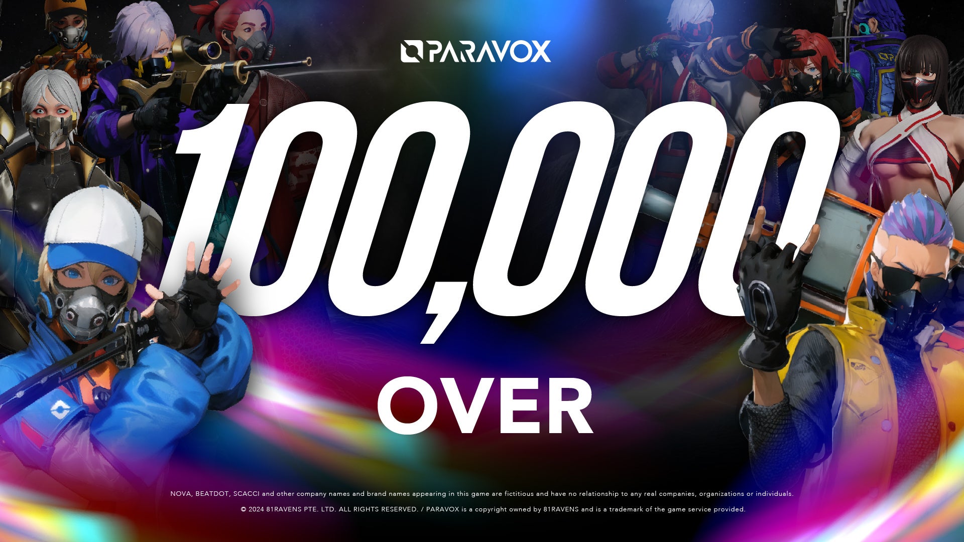 この度、81RAVENS PTE. LTD.の提供する3vs3形式ハイスピードTPS「PARAVOX」のオープンαテスト版におけるユーザー数が100,000人を突破致しました。