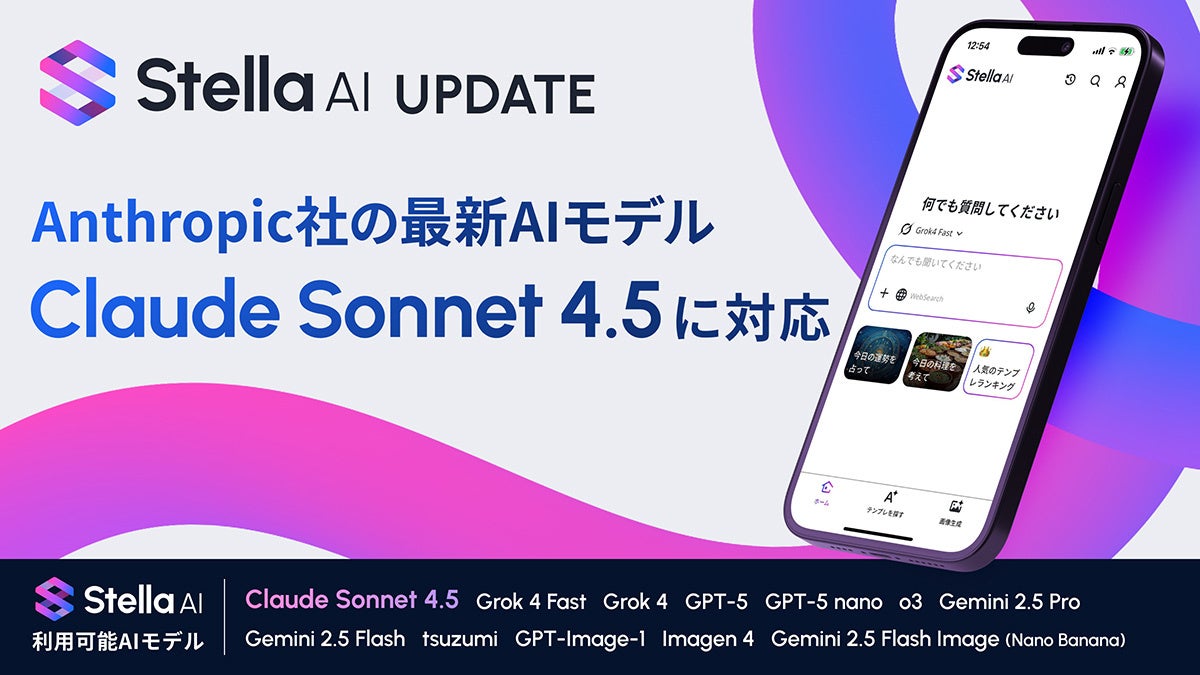 「Stella AI」に、Anthropic社の最新AIモデル「Claude Sonnet 4.5」を追加