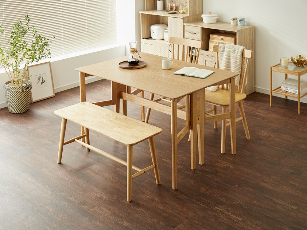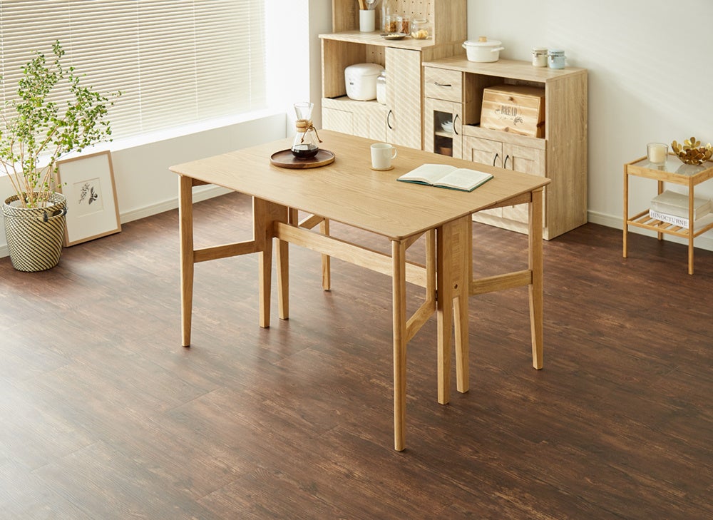 今回新発売する、折りたたみテーブル「Natural Wood Folding Dining Table」は、オーク突板を使用した温かみのあるデザインと、使用シーンに応じた柔軟なサイズ調整が特長。お部屋のスタイルに合わせたコーディネートが可能です。空間を有効活用し、さまざまな用途に対応できる新商品をぜひお試しください!