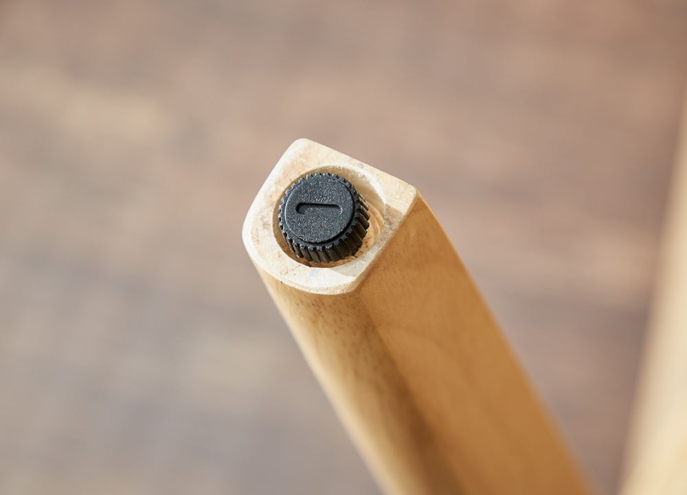 脚先にはアジャスターを付けているため、ガタつきを抑えた安定感のある使い心地を実現しています。