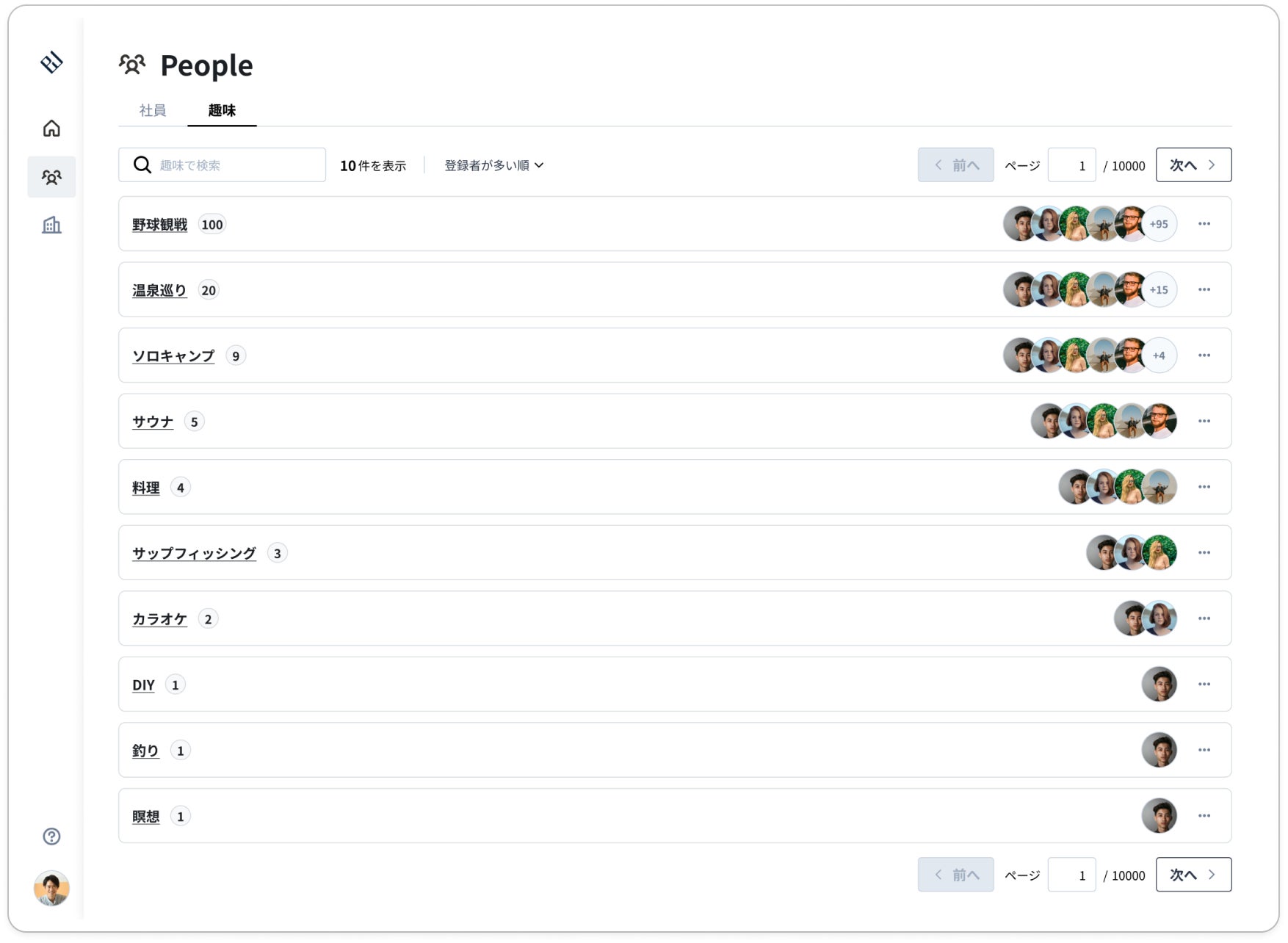 今回、全社横断のコラボレーションをさらに促進するために、全社員の趣味を一覧表示で可視化するアップデートを行いました。これにより、共通の趣味を見つけやすくなることや、それをきっかけに生み出される部署横断のコラボレーションを実現することができます。