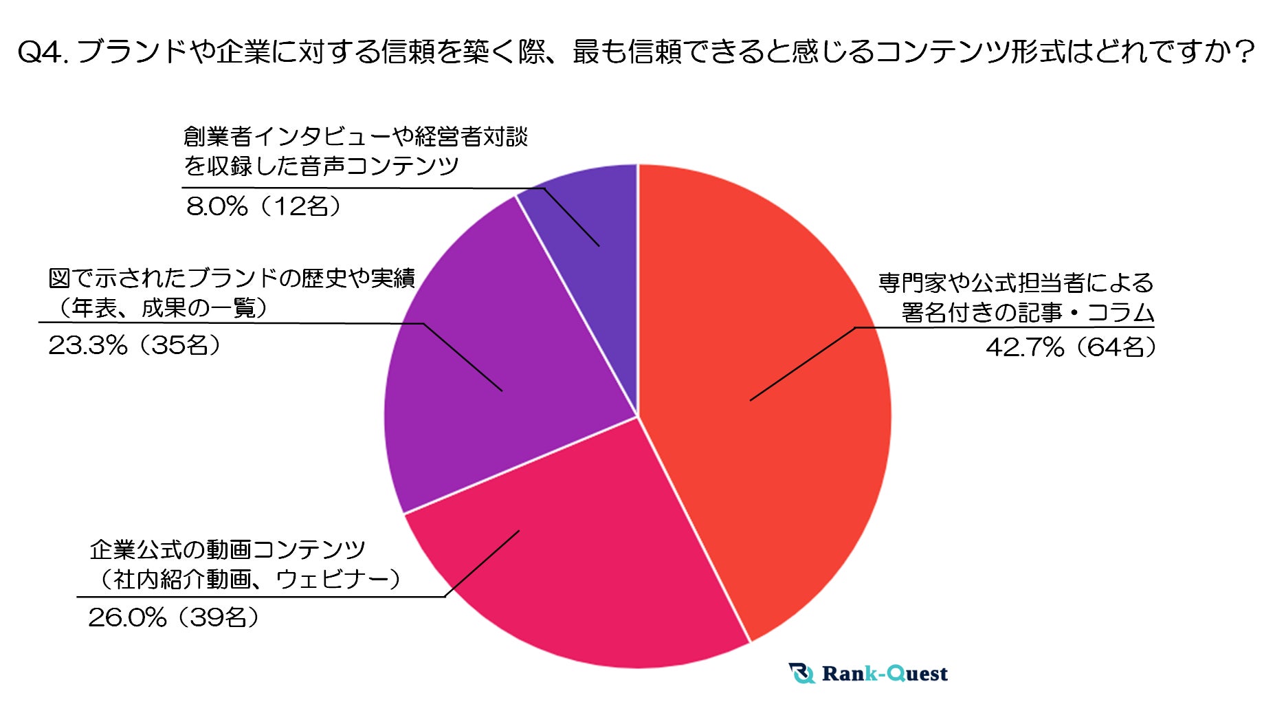 調査結果④:ブランドや企業に対する信頼を築く際、最も信頼できると感じるコンテンツ形式はどれですか?