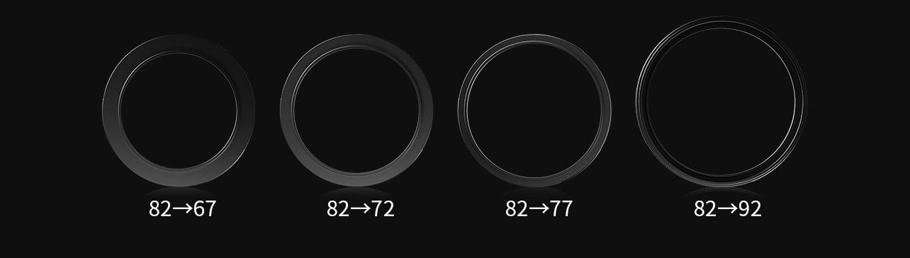 1.25xアダプターは82mmのリアスレッドを持ち、67mm、72mm、77mmの3種類のステップダウンリングと、92mmのステップアップリングが用意されています。これにより、市場に出回っているさまざまな人気レンズと互換性を持たせることができます。