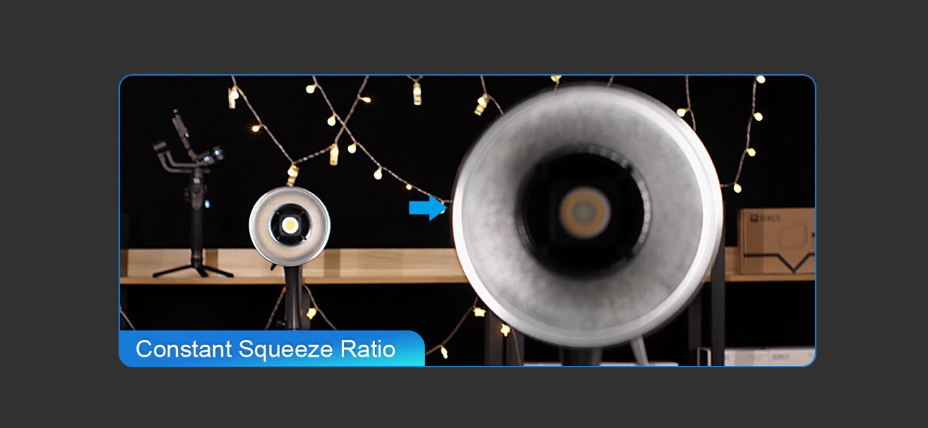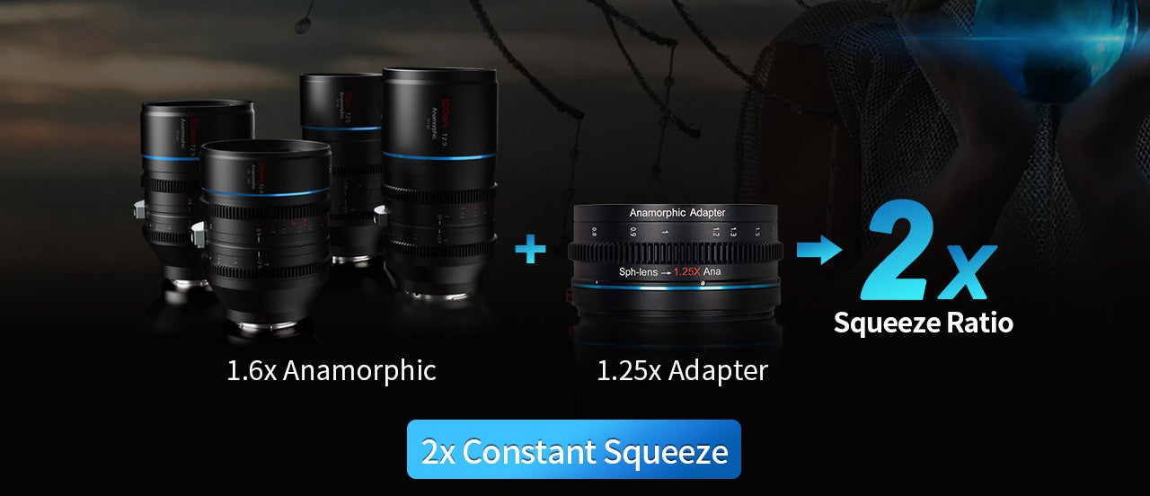 SIRUI 1.25Xアダプターを1.6Xアナモルフィックレンズに取り付けることで、2Xスクイーズを実現できます。スクイーズ比が高くなることで、アナモルフィック特性がより顕著になり、例えばボケが細くなり、浅い被写界深度が得られます。