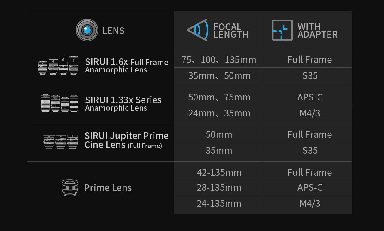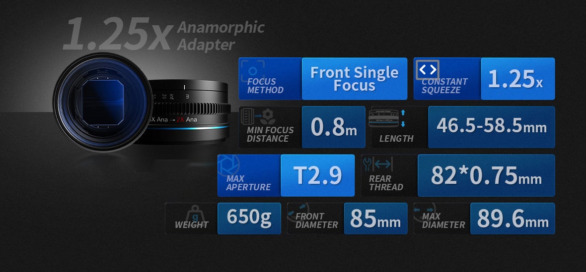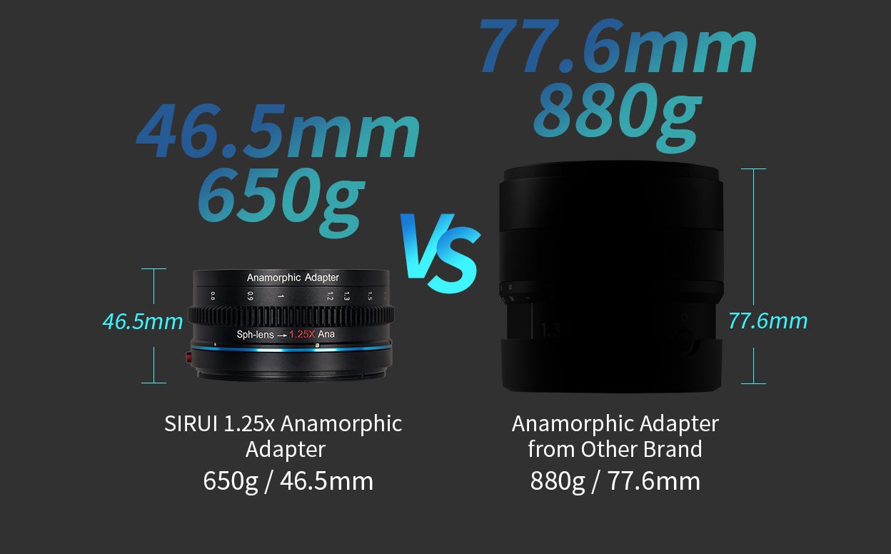 SIRUI 1.25Xアナモルフィックアダプターは、複数の球面レンズ(例:単焦点レンズ)をアナモルフィックレンズに変換することができ、また、アナモルフィックレンズのスクイーズ比を高めることができます。コストパフォーマンスに優れたアナモルフィックソリューションで、多くのクリエイティブな楽しさを提供します。
