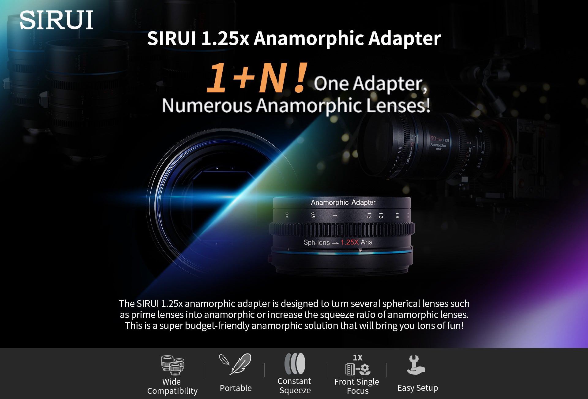 「SIRUI 1.25Xアナモルフィックアダプターレンズ」1+N! 多様なアナモルフィックレンズと組み合わせ可能