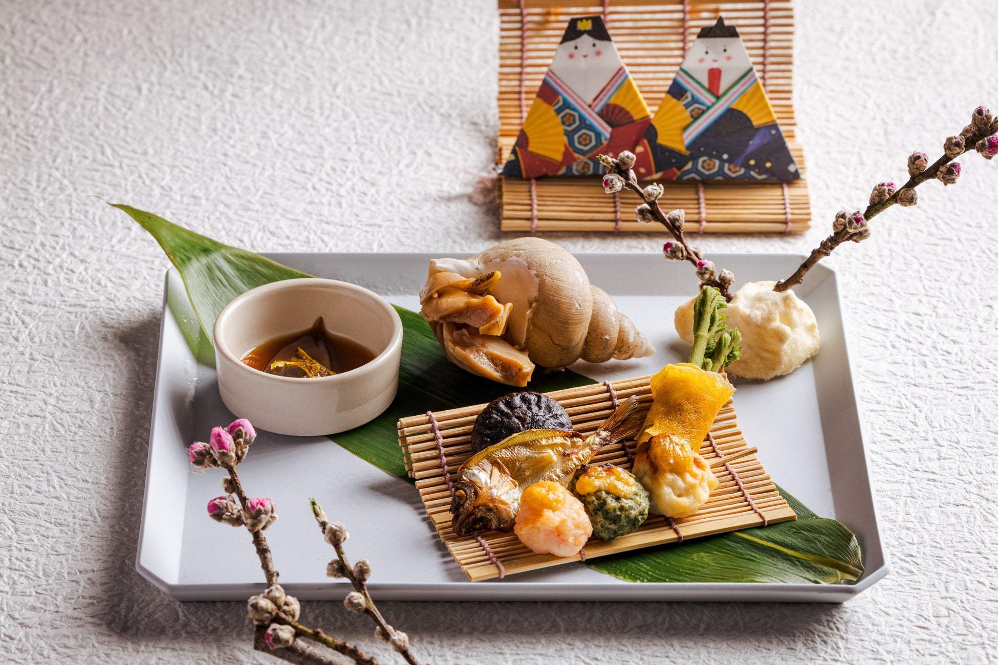針柚子を添えた蛍烏賊のみそだまり沖漬けや鰆と春野菜に味噌󠄀だれをかけて蒸し焼きにした奉書焼きなど、厳選した旬の食材を提供