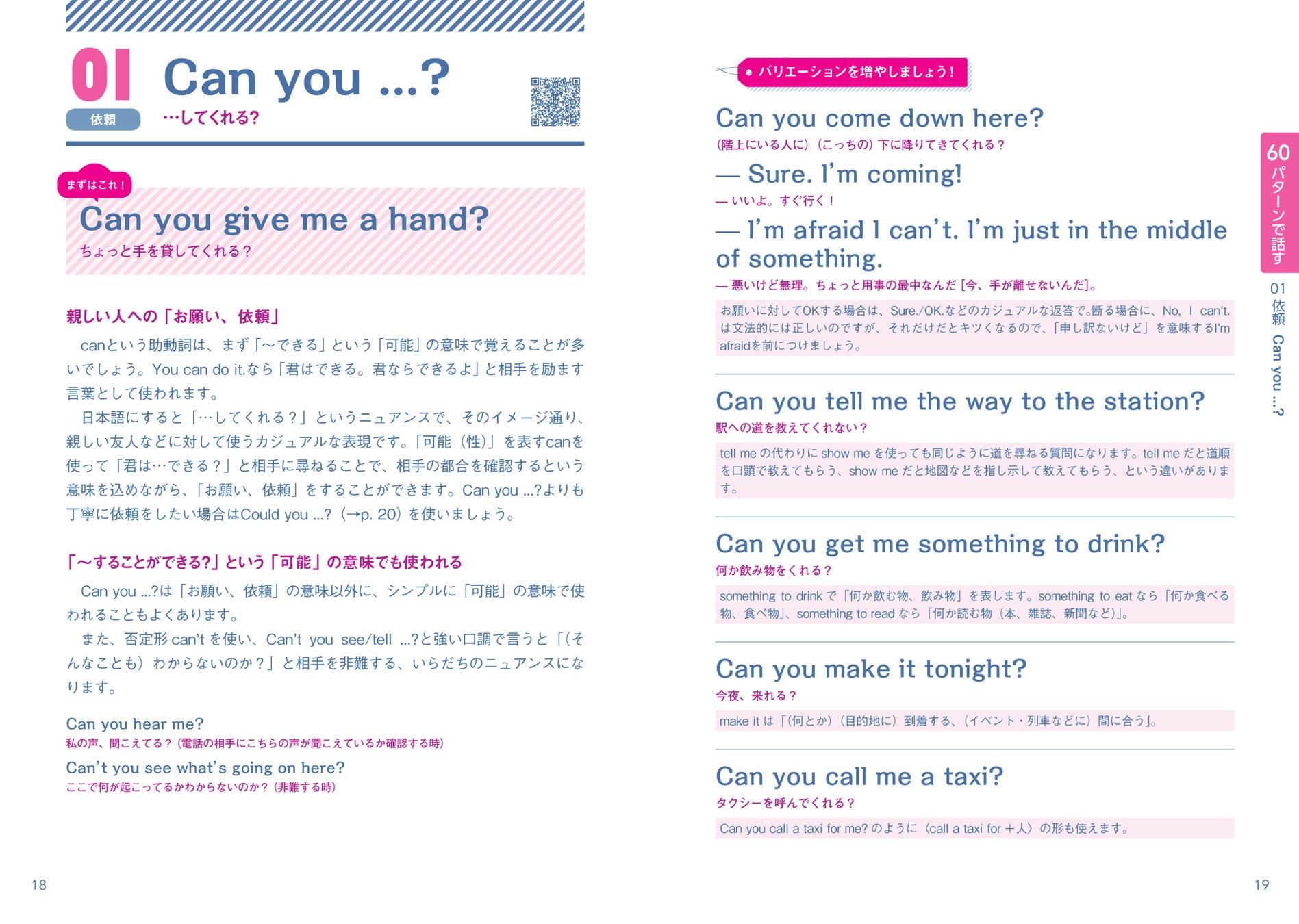 英会話にはよく使われる言い回し、パターンがあります。“Can you...?”、“I’m going to ...”など、ネイティブが本当に使う60パターンを厳選して解説します。
