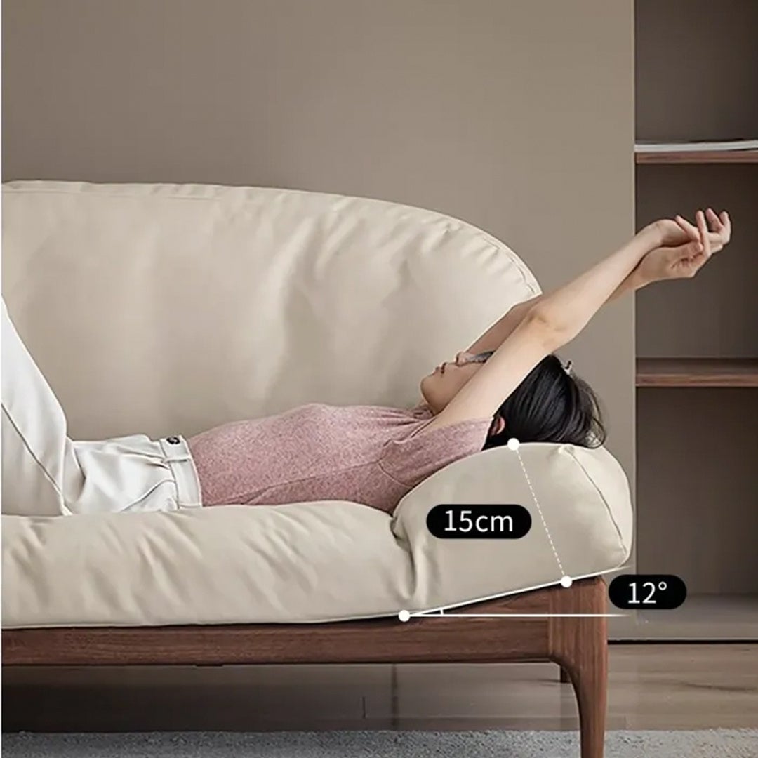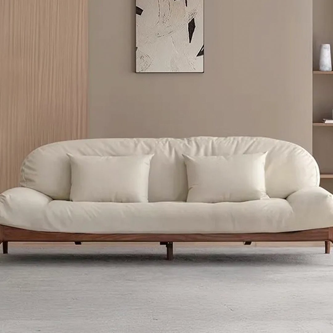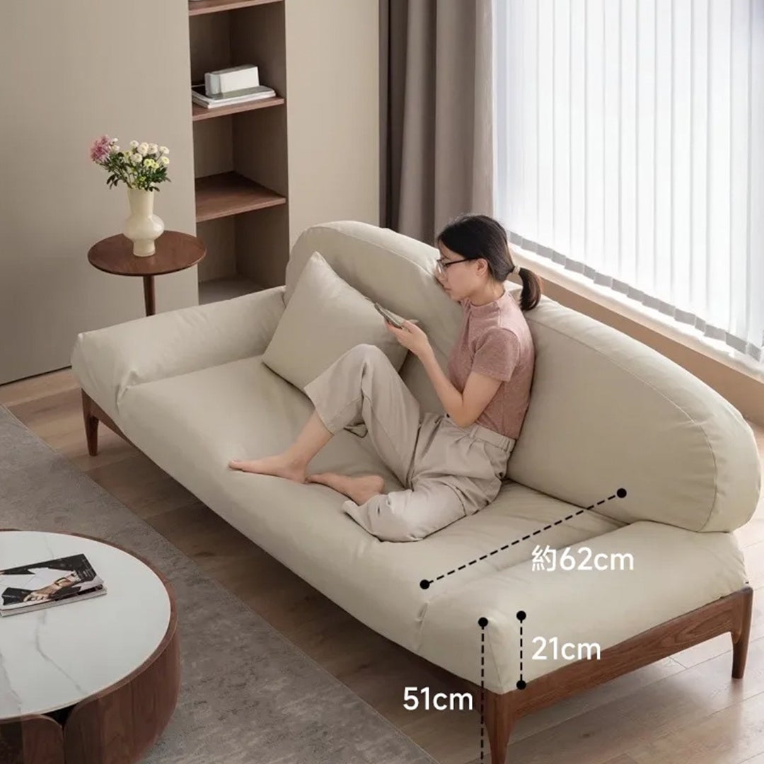 北米産ウォールナット材を使用した、優雅で上質なソファ。高反発ウレタンとファイバーダウンのクッションが雲のような座り心地を実現し、長時間の使用でも快適です。表地には耐久性にも優れたマイクロファイバーを採用し、お手入れも簡単。