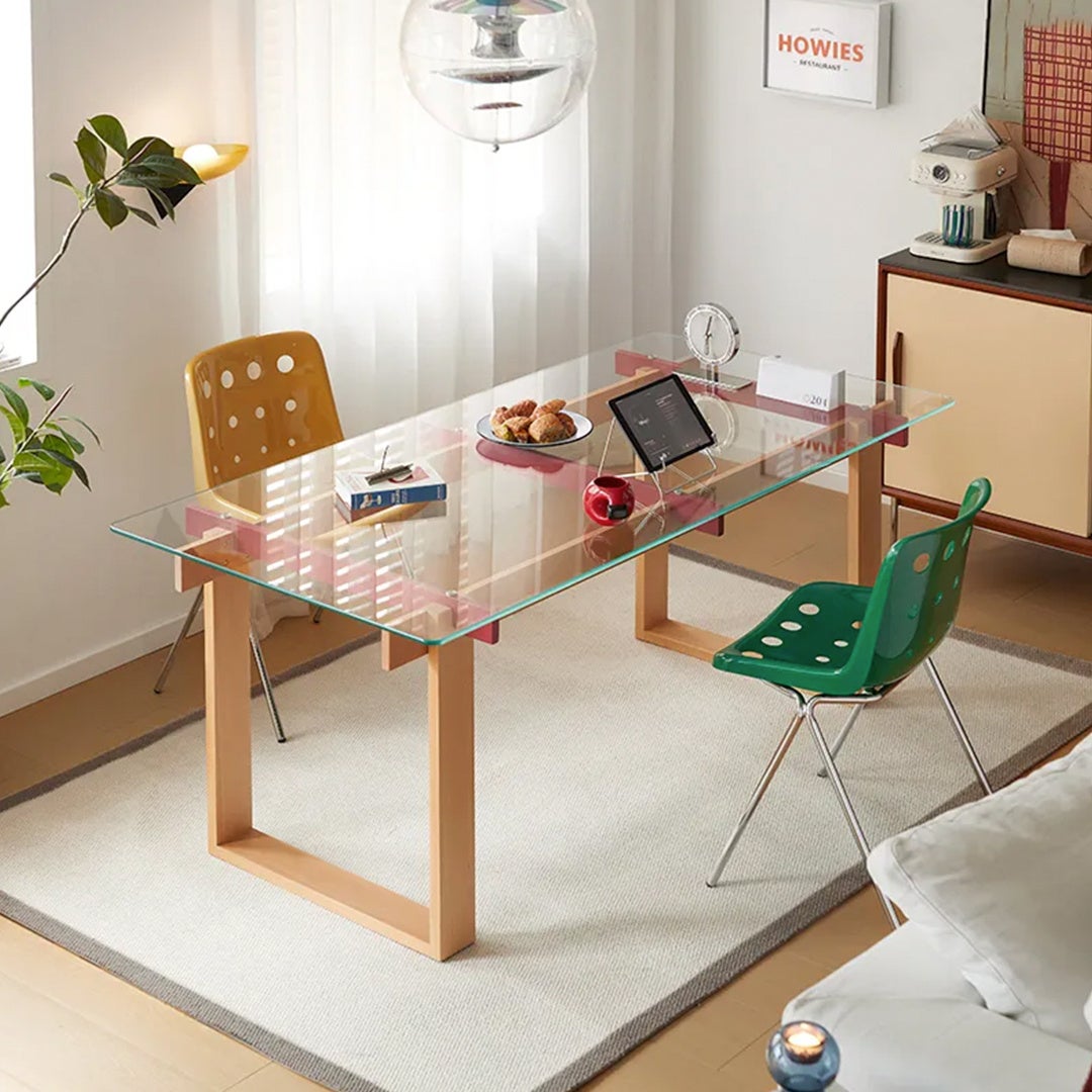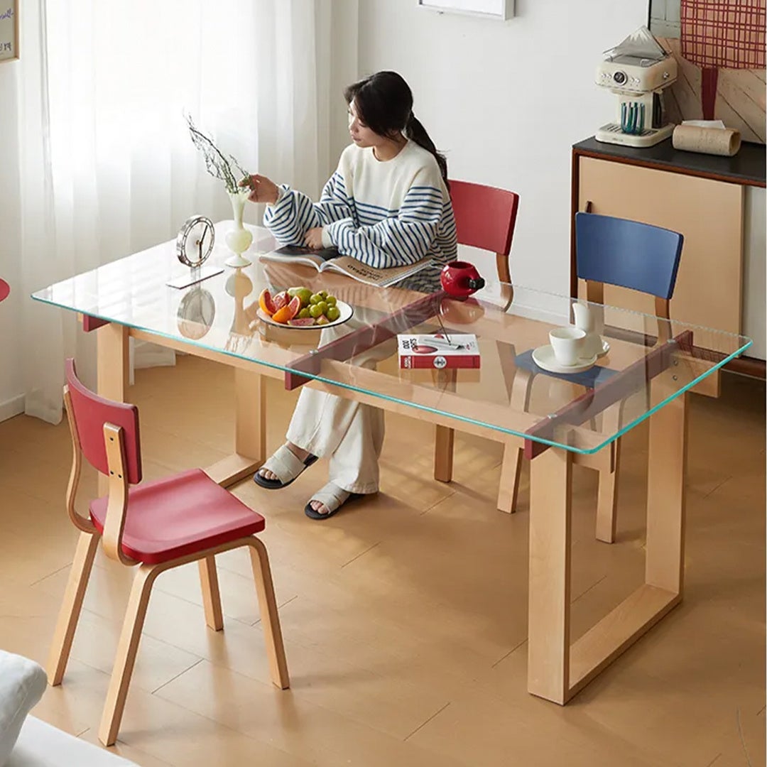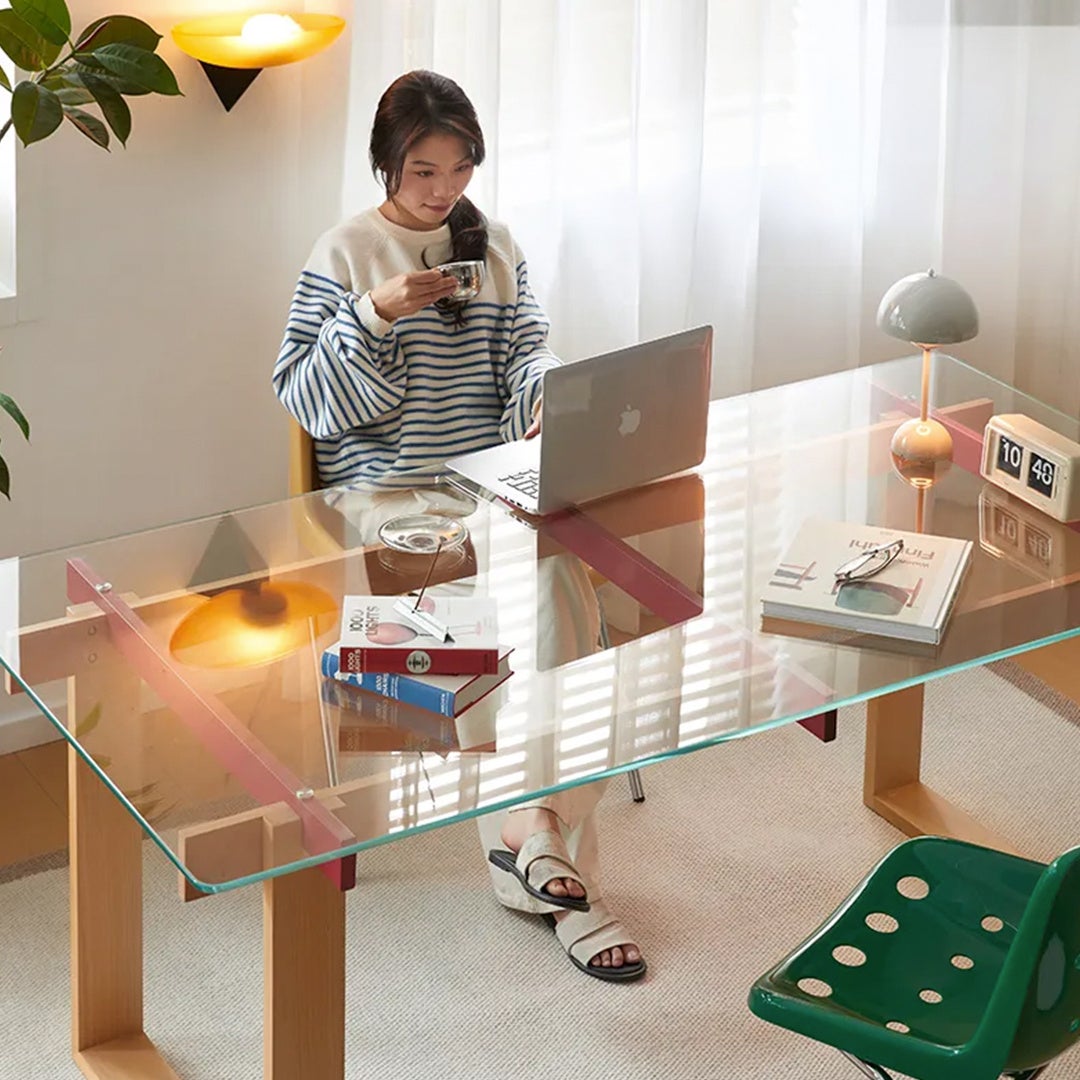 透明感と耐久性を兼ね備えた強化ガラス天板が、空間に洗練された印象をプラス。頑丈なブナ材脚とステンレス補強で高い安定性を実現し、長く安心して使えます。丸みのある角で安全性にも配慮し、小さなお子様がいるご家庭にもおすすめ。