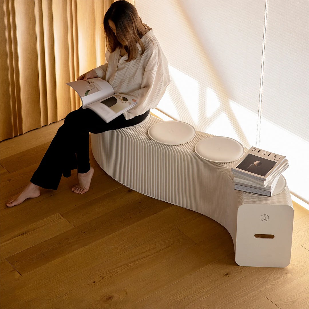 折りたたみ式スツールは軽量で持ち運びやすく、使わない時はコンパクトに収納可能。高品質クラフト紙と植物由来の接着剤を使用し、環境にも優しい設計。リビングや玄関など多様なシーンで活躍し、インテリアとしても楽しめるのが魅力です。