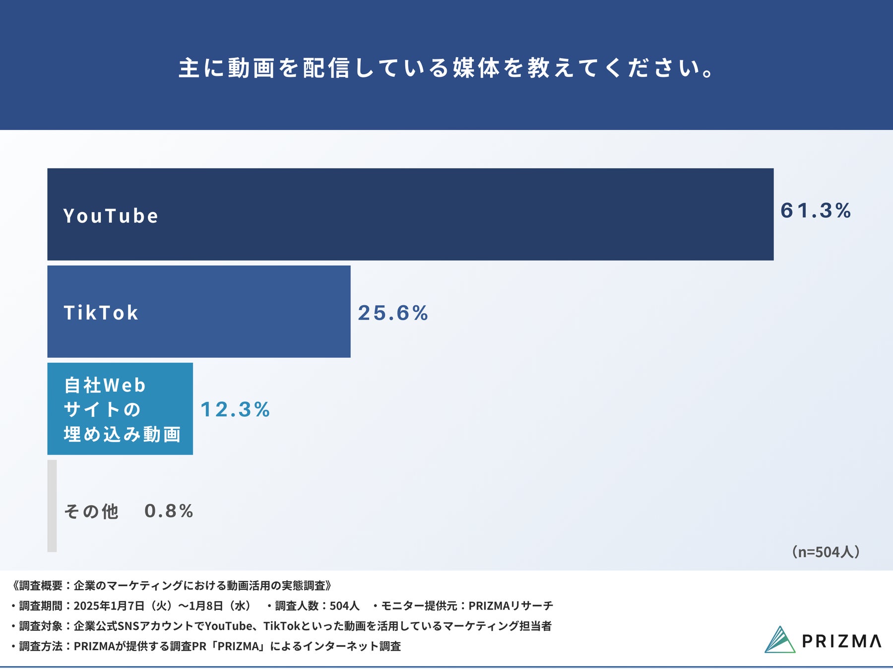 今回、株式会社PRIZMA(https://www.prizma-link.com/press)は、企業公式SNSアカウントでYouTube、TikTokを活用しているマーケティング担当者504名を対象に、「企業のマーケティングにおける動画活用の実態調査」を実施しました。