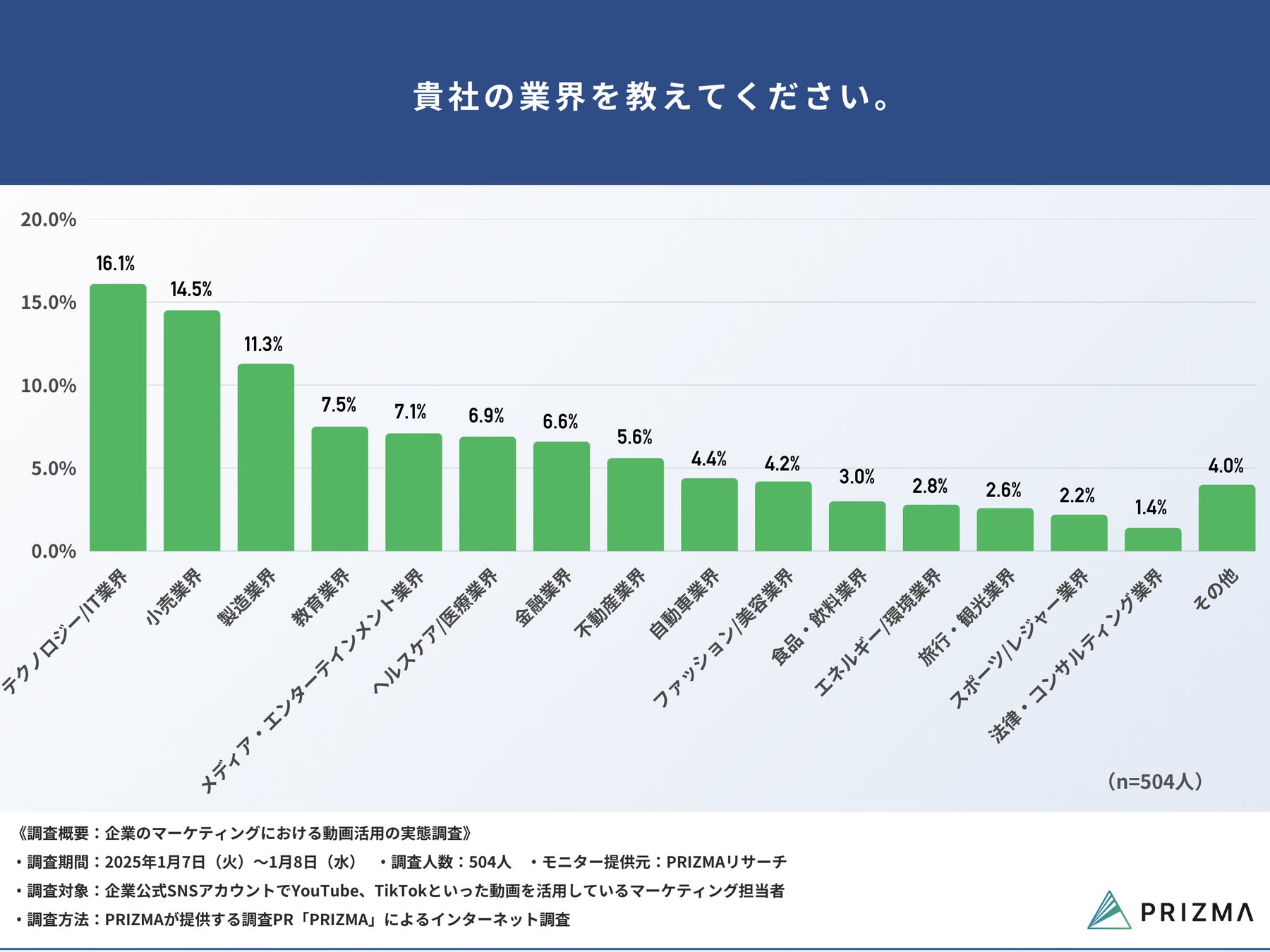 テクノロジー/IT業界や小売業界が、比較的動画マーケティングの活用において積極的であることがうかがえます。