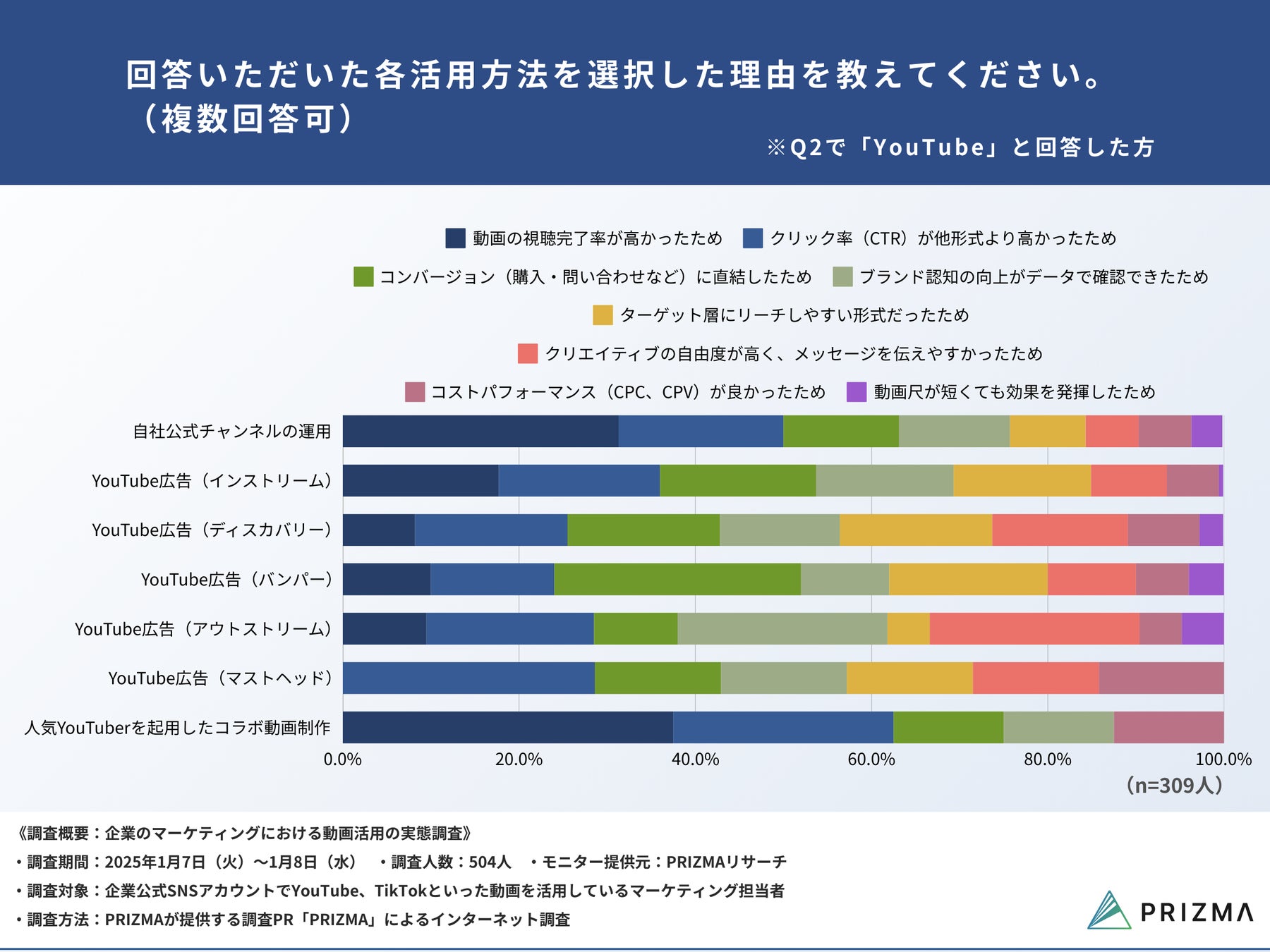 特に、「視聴完了率」や「CTRの高さ」、「ターゲット層へのリーチのしやすさ」といった指標が選択理由として重要視されている点が特徴的です。