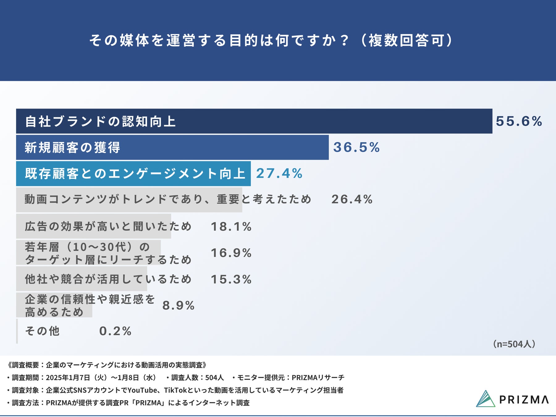 動画配信媒体を運営する目的は『自社ブランドの認知向上』が最多